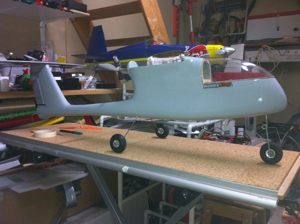 De même j’ai changé la jambe avant un peu courte et la roue qui pour le coup est vraiment minuscule. J’ai mis une roue identique aux deux autres déjà changées aussi, des 65mm de chez Graupner : éprouvées et robustes pour cet usage.