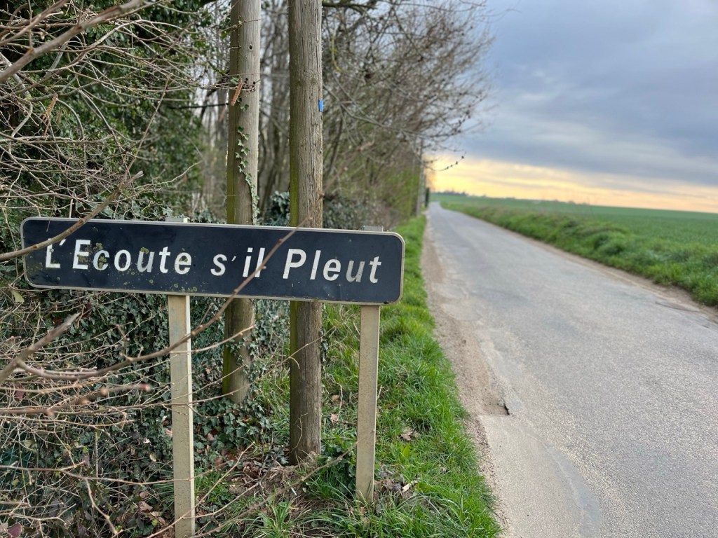 Ce matin petite angoisse au départ car la journée va être longue, 30km à parcourir j’espère que ce n’est pas un test trop tôt dans ma progression … on verra bien. Le départ se fait sous un ciel gris avec un soleil qui tarde à se faire voir. En marchant j’adore prendre en photo les images parfois hétéroclites comme ce nom de lieu-dit. Une autre à venir en fin de journée d’ailleurs.