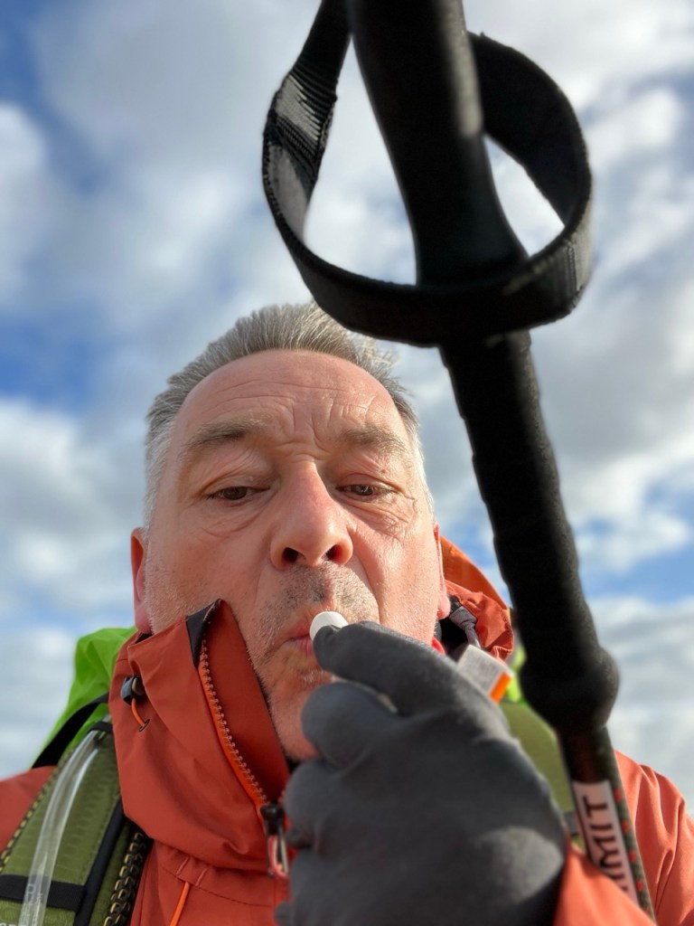 C’est reparti après une petite pause, cheveux aux vent toujours, et mon appli qui ne repère pas mon point gps lorsqu’elle m’annonce que je m’éloigne du chemin alors que je suis pile dessus.