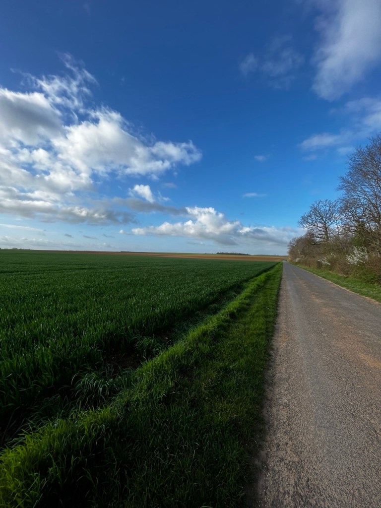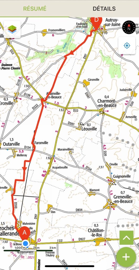 Au départ de Autruy ce matin je quitte l’hôtel du Cygne tenu par Sabine et Patrice, qui m’ont joliment accueilli, il y a un vent à décorner des bœufs. Et j’entame la traversée de la Beauce, autant que ça va être aussi lisse que la tête de Laurent (il se reconnaîtra 😂). Et en effet le vent souffle, il dessèche, stick à lèvres obligatoire.