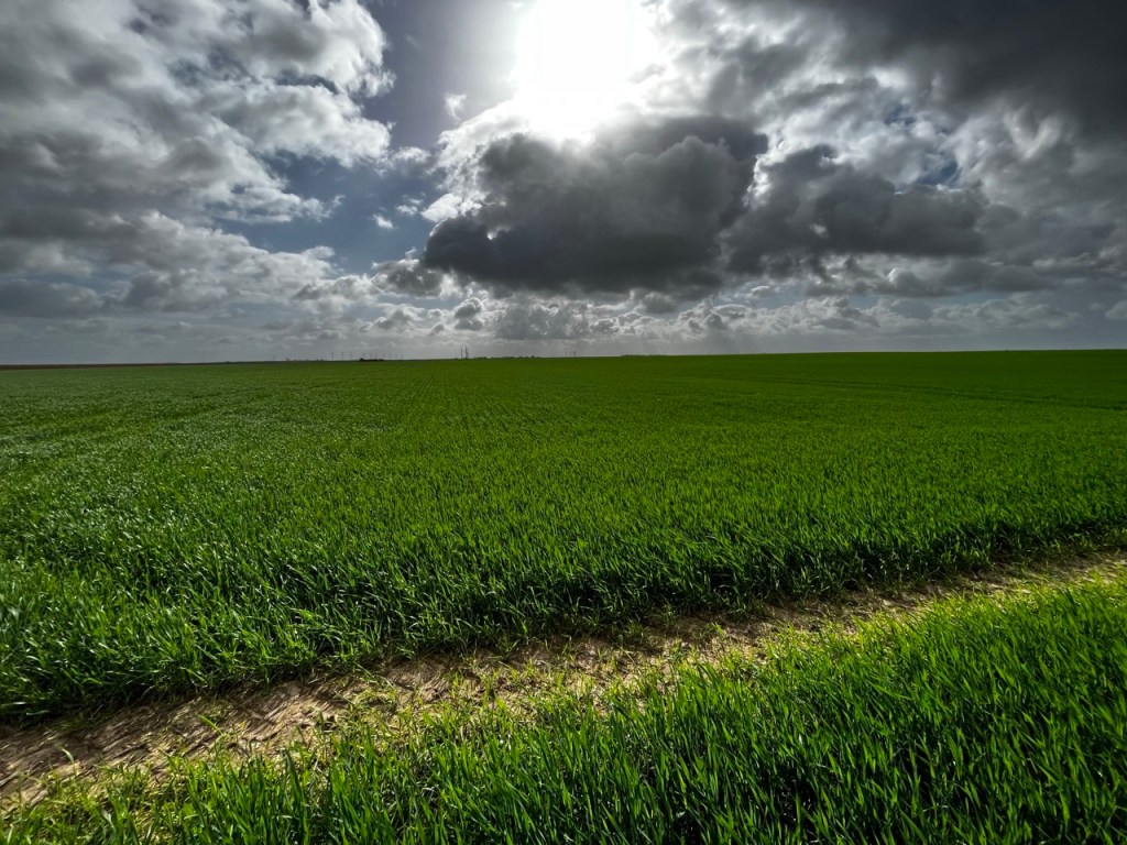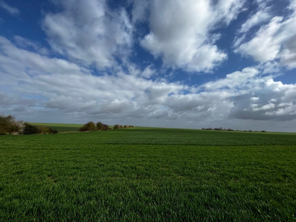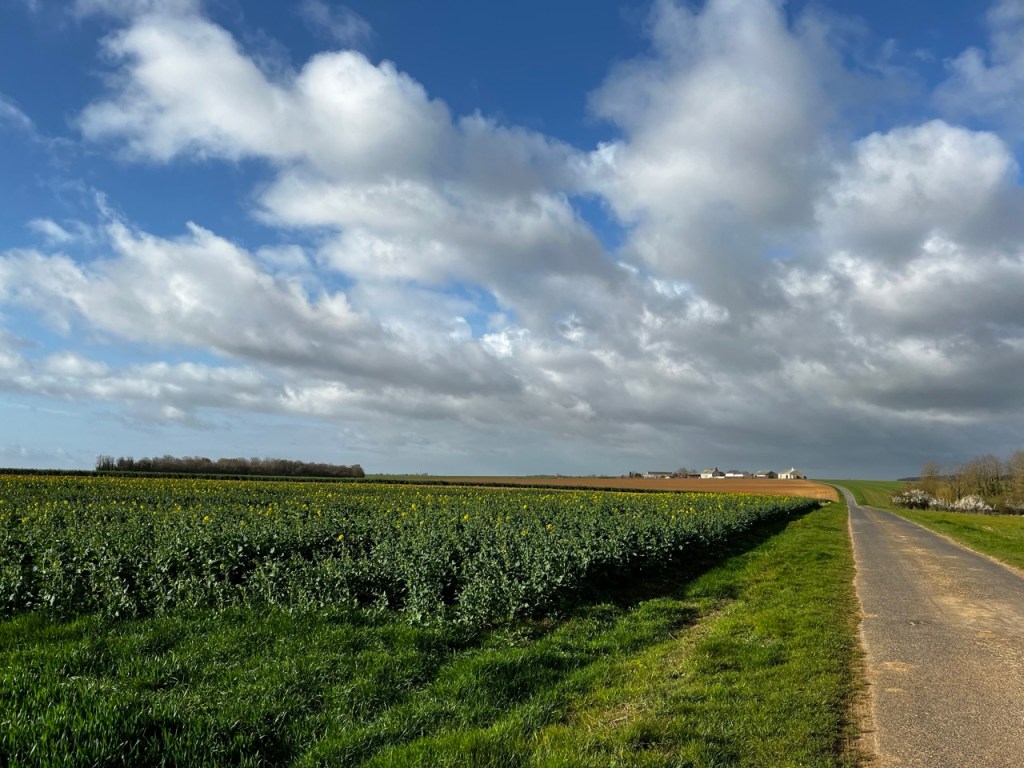 Ceci dit les nuages et le ciel bleu offrent des couleurs superbes sur ces champs en début de pousse, quel que soit le coté où l’on regarde