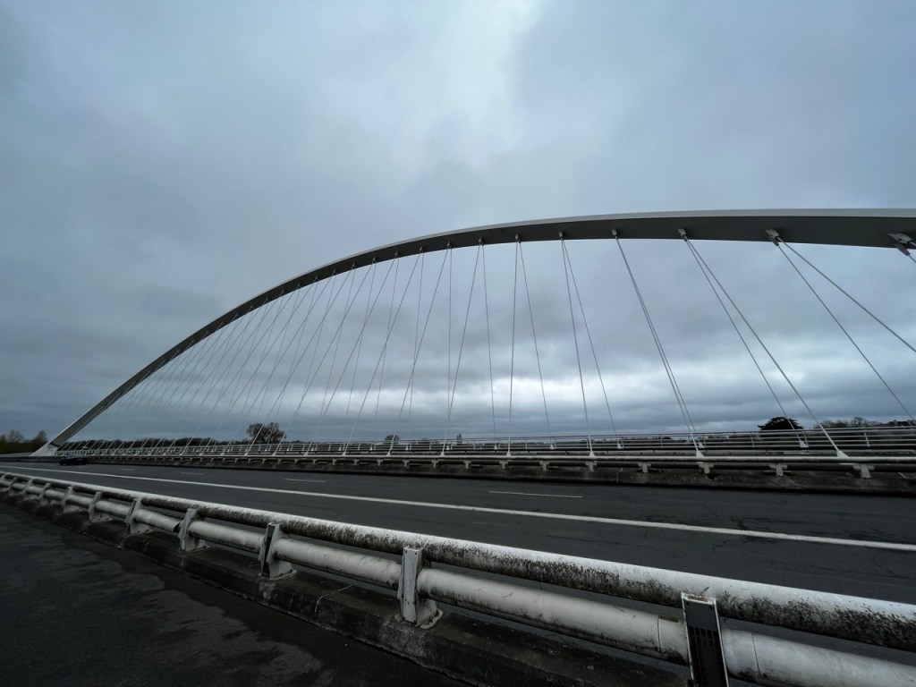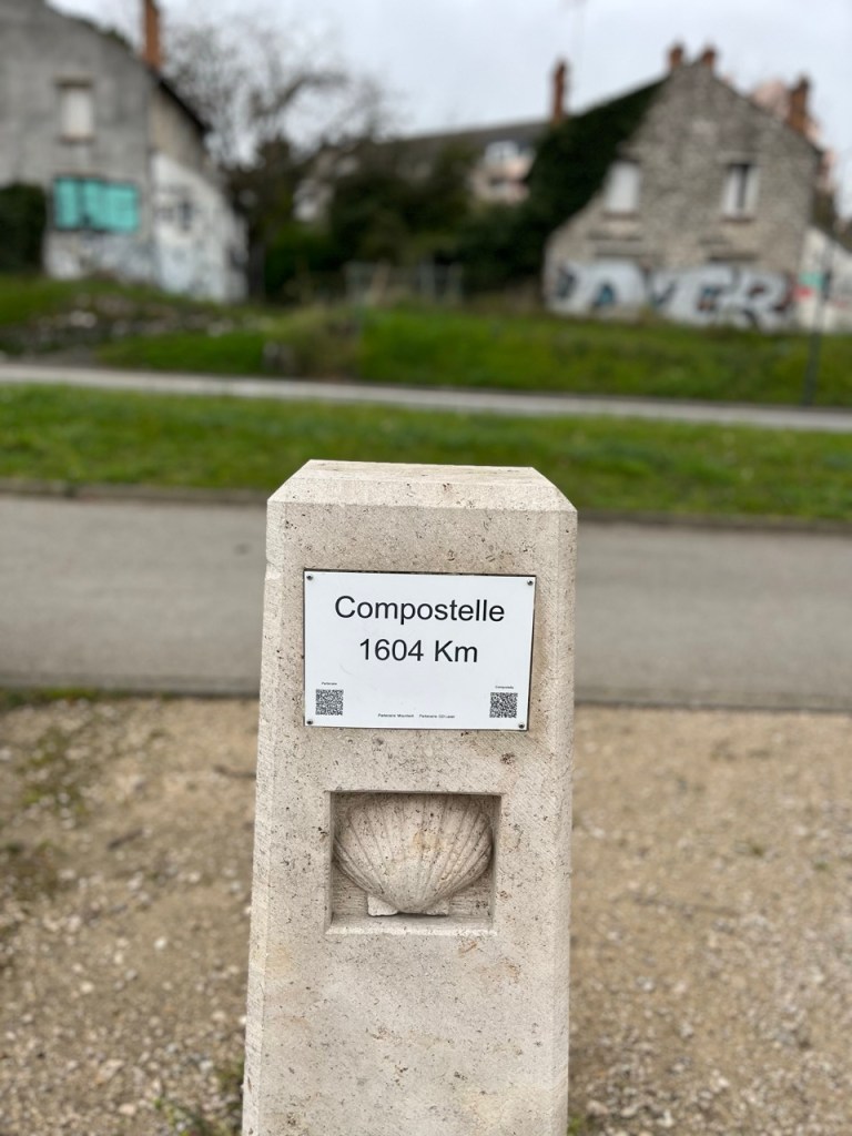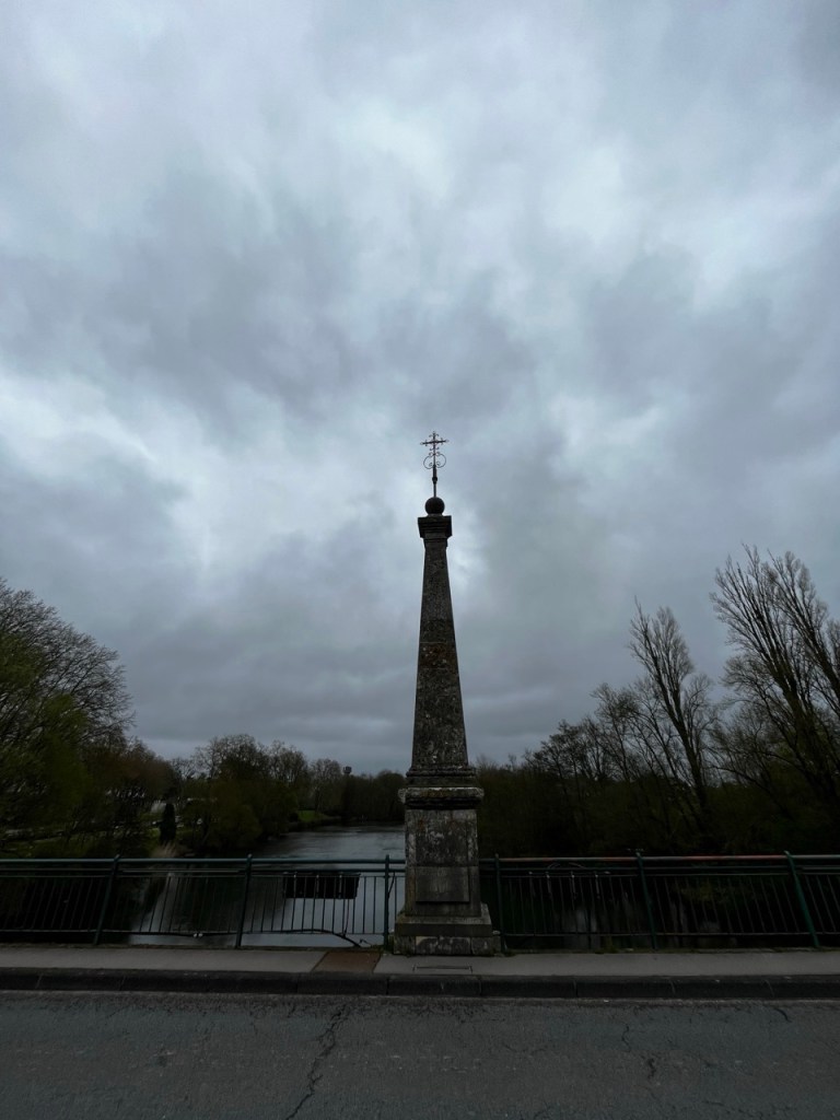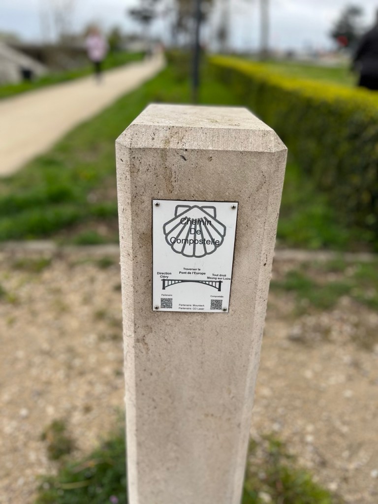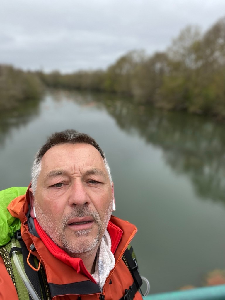 A l’approche du pont de l’Europe qui va me porter vers l’autre rive, côté gauche du fleuve, je trouve cette borne vers compostelle. 1600 km encore alors que j’en suis à 190 km environ. C’est à la fois peu parcouru au regard du total mais tellement satisfaisant au bout d’une semaine que j’ai réalisée avec succès et deux étapes difficiles mardi et vendredi. Donc très satisfait et d’attaque pour la suite.