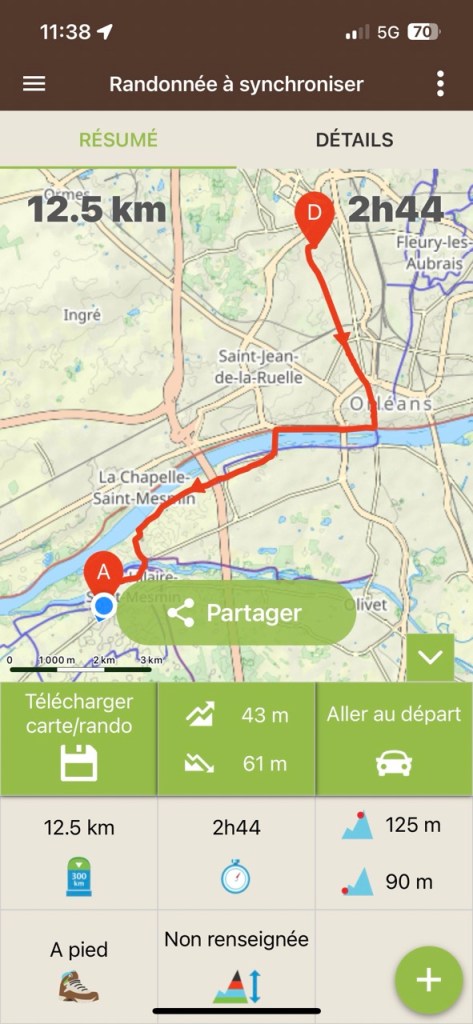 Ensuite passage au centre de la ville d’Orléans, un petit bonjour à Jeanne d’Arc et direction les bords de Loire sous un ciel un peu chargé mais enfin sans vent ni pluie, juste quelques degrés en moins.