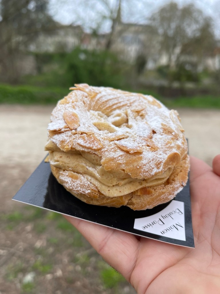 Après un rythme toujours soutenu le matin, et 13km couverts, c’est la pause sandwich, au bord du Beuvron, petit affluent de la Loire qui s’y jette juste avant d’arriver à Chaumont. Le poulet curry salade est accompagné d’un paris brest et d’une tartelette aux pommes excellents !! Les calories consommées valent une petite friandise … compter 2000 kilo calories par jour pour 20km, soit un petit gâteau ☺️.