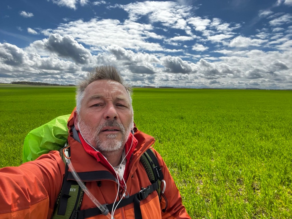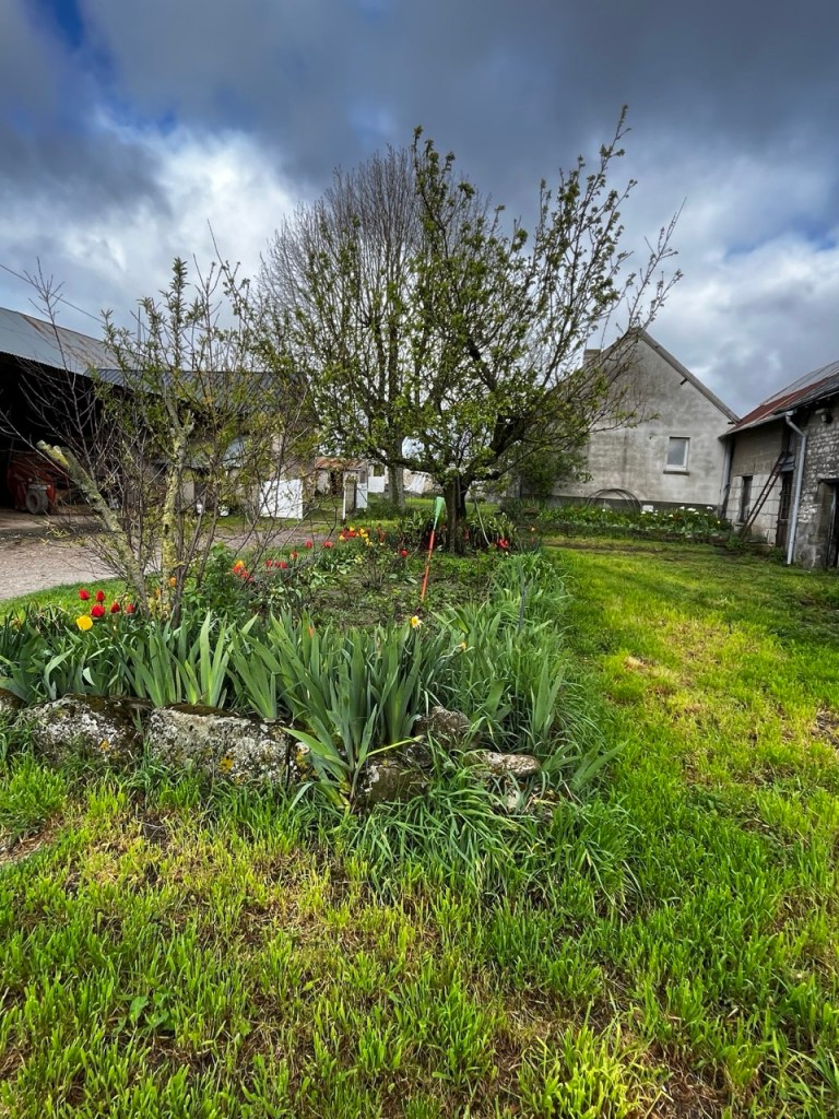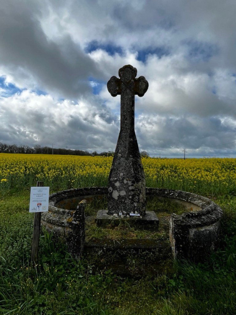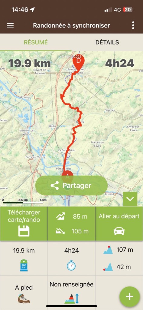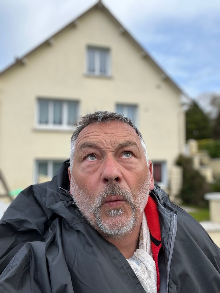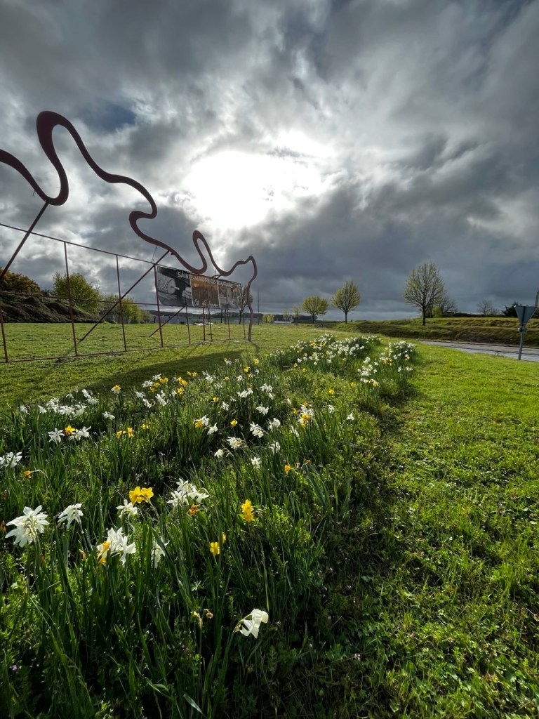 Je ne fais pas la tête en sortant à cause de cela mais plutôt à la vue du ciel !! Hier soir le gîte était occupé par 2 autres marcheurs, Florence 71 ans orthophoniste à la retraite, Éric 62 ans retraité aussi. Florence a déjà 2 camino a son actif , Éric est novice comme moi et en plus il a un petit sac (mal au dos) et une espèce de cariole qu’il a bricolé, dont un axe de roue s’est dessoudé. Il a trouvé une petite entreprise de Sainte Maure qui lui solutionné cela par une soudure à l’arc. L’occasion d’échanger durant la soirée les expériences et sensations. Première nuit en mode «dortoir » mais la fatigue l’a emporté, et pas de ronfleurs sauvages. Ou alors nous avons été super polis !! 😂😂 Florence lève le camp à 8h suis des trombes d’eau, elle est en sandales et chaussettes … ça va être humide pour elle ! Eric suis 30mn plus tard dans les quasi mêmes conditions. Moi je m’entête sur le blog, sans succès et à 9h je suis dehors avec cette grimace ! D’ailleurs je note que le gîte est sis Rue Rabelais, même nom de rue que chez moi.