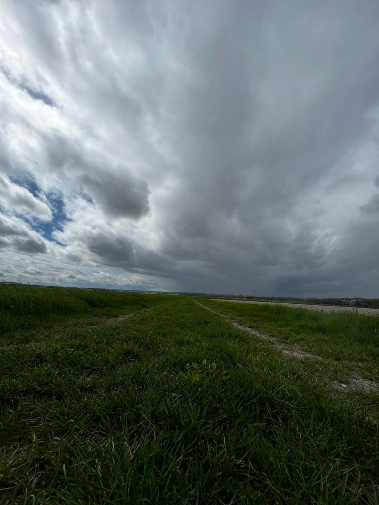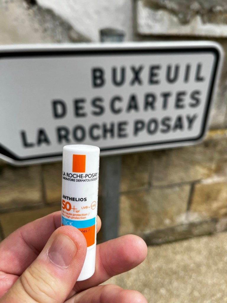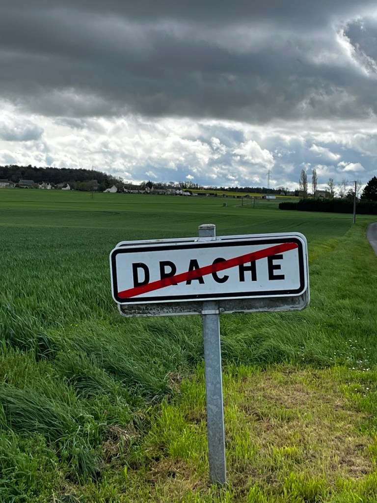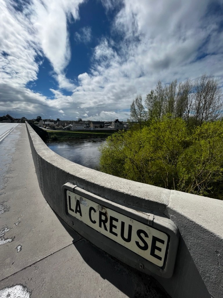 Je ne m’attarde pas il faut y aller, 20km aujourd’hui, 4h30 environ donc. Une paire de vieilles Citroën sont à la sortie de Sainte Maure, la 404 de Columbo … Un nouveau front nuageux se présente il va falloir viser entre les masses d’eau et jouer avec le vent. Petit rappel que Sainte Maure a une production de fromages de chèvres excellents !! Pour l’instant les tâches de ciel bleu et de nuages blancs qui courent se battent, je garde la cape … on ne sait jamais.