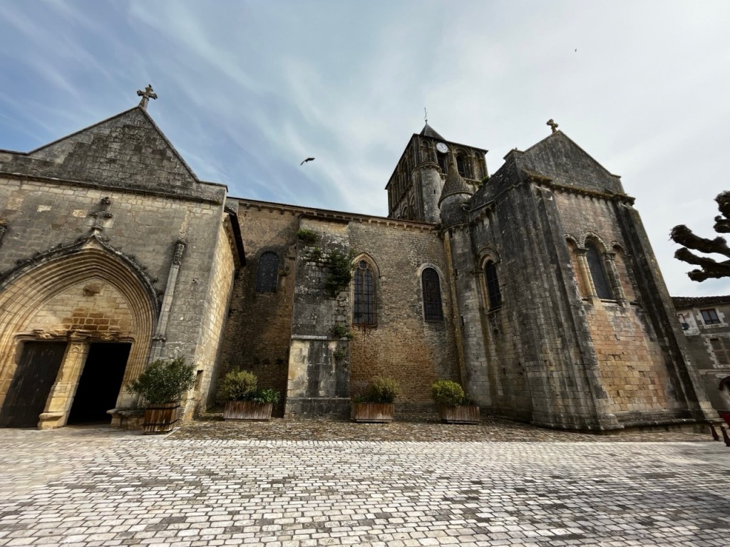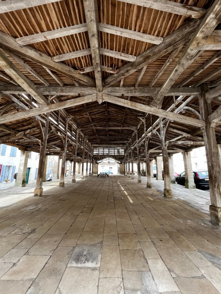 Après une pause café à Lusignan je franchit ce petit ruisseau, qui fera écho à ma recommandation musicale du jour, car elle m’a été soufflée par François Morel (France inter ce matin) lors de son édito, au moment où je passais sur le pont. Vous verrez le lien il y a de la sérendipité dans tout cela, le fruit du hasard heureux. L’église de Lusignan a plus de 1000 ans, débutée au XIeme siècle, majestueuse mais ancienne tout de même. Le marché couvert est en superbe état aussi.