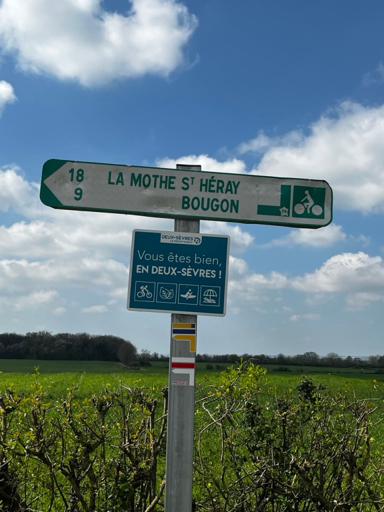 Changement de département, au revoir la Vienne, bonjour les Deux Sèvres. Deux grandes lignes droites et enfin l’arrivée de cette étape qui donc comme je le disais a bien caché son jeu : finalement 27kms, à la moyenne de 4,5km/h, j’ai bien marché. C’est la seconde étape la plus longue. Et les pieds sont en super état, pas une ampoule, un durillon ou autre souci. Le rodage est ok, néanmoins on va revenir à des distances de 20 à 24km je pense.