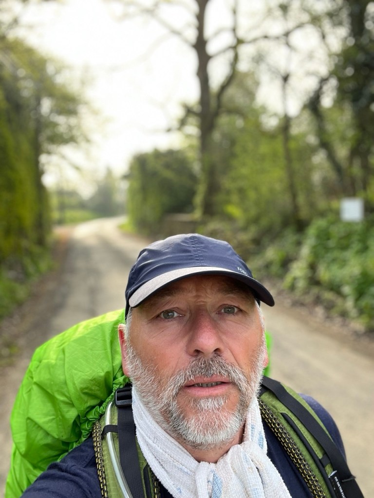 Au départ de cette nouvelle journée je me disais que ce serait une petite étape de 21km, donc cool au regard des 27 de la veille. Et en fait au fur et à mesure j’ai eu un coup de mou progressif. Sans doute le résultat de l’effort de la veille. Je quitte Esther et Jean-Louis, et parcours les premiers hectomètres avec le papa de Esther passé dire bonjour, et qui est sur le même chemin. Rapidement il me souhaite bon courage et je file sur la route ensoleillée. Il y a du vent, un peu de fraîcheur.