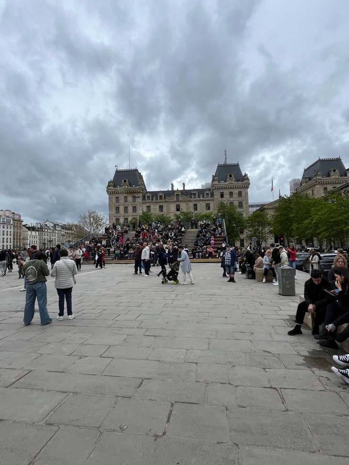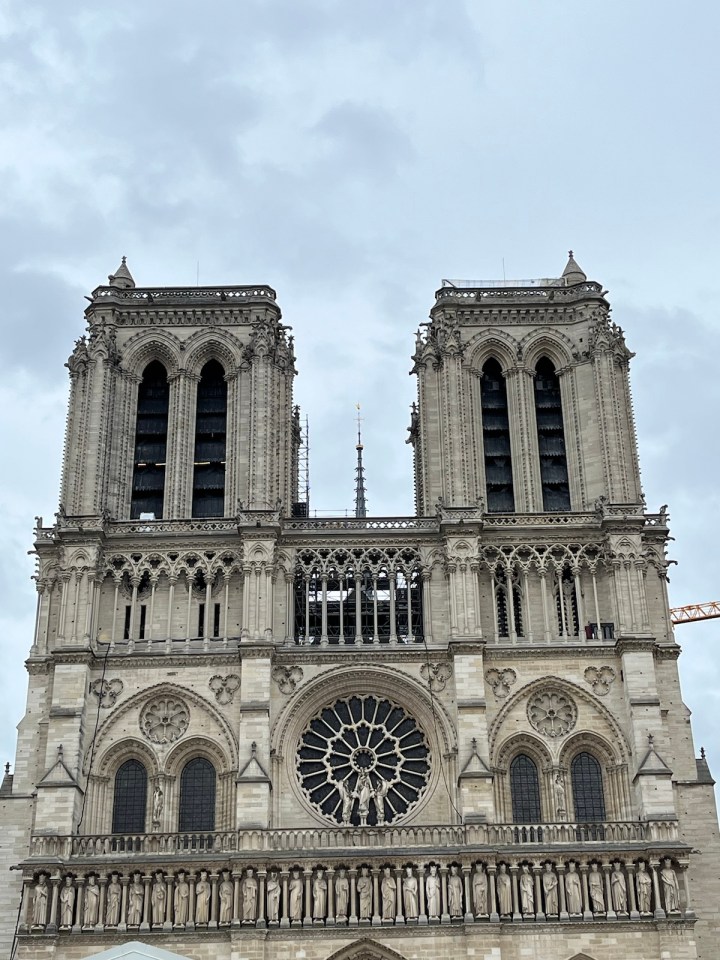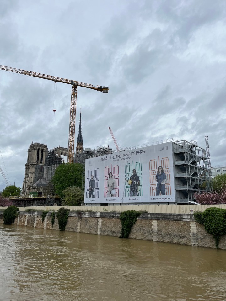 Les travaux de reconstruction de Notre Dame avancent aussi à grand pas et beaucoup de personnes viennent voir, lisent les panneaux descriptifs des travaux, c’est impressionnant cette attention qui est portée. La flèche est désormais visible défaite de son échafaudage entre les tours. Le public s’assied juste pour contempler cela.