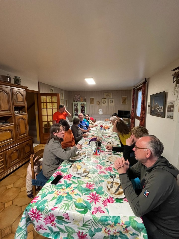 Grande tablée hier soir chez Jesus notre hôte. 11 personnes et un bébé de 11 mois. Nous avions Violaine de Montréal, Munakata de Fukushima, Cécile et Priyem et leur bébé Edith donc, Evan (19 ans), et Jean-Christophe et Anne, Clara et Rosalie et Thierry avec qui nous nous retrouvons depuis 3 jours. Dîner excellent avec un bœuf bourguignon et des conversations croisées bien marrantes.