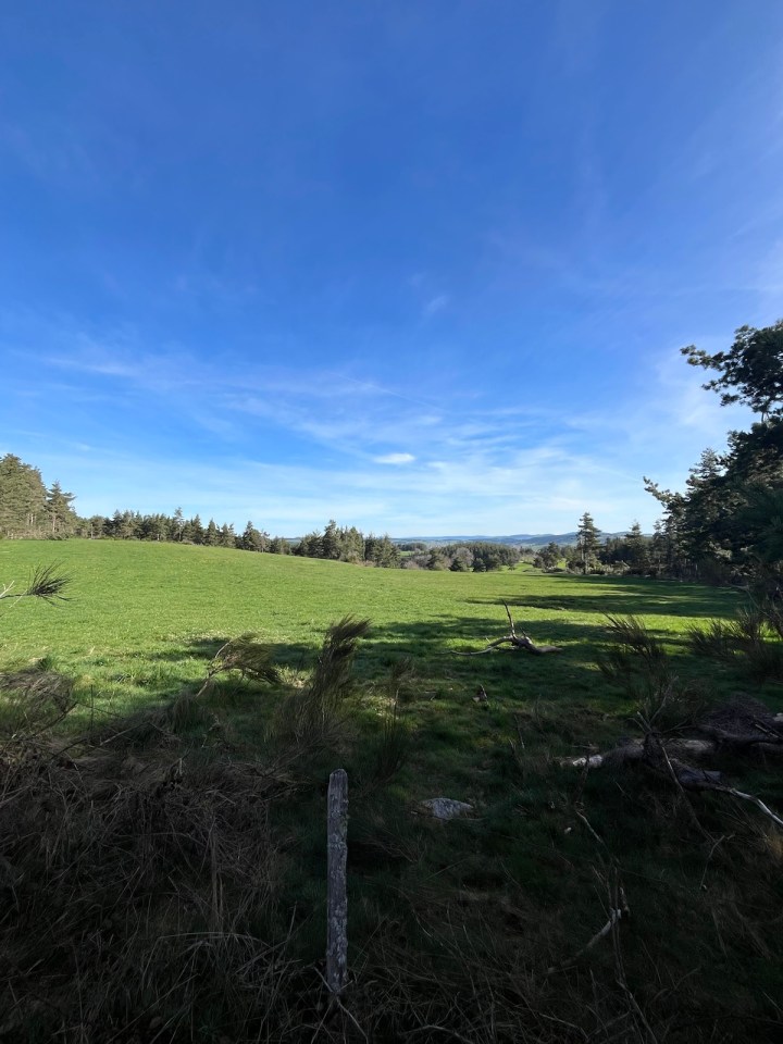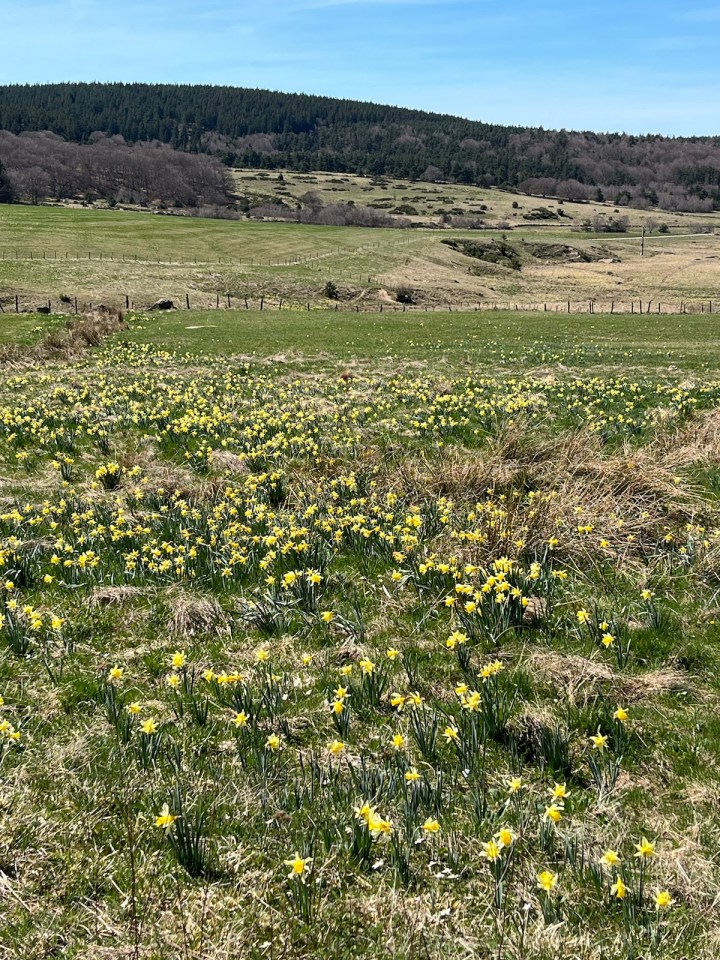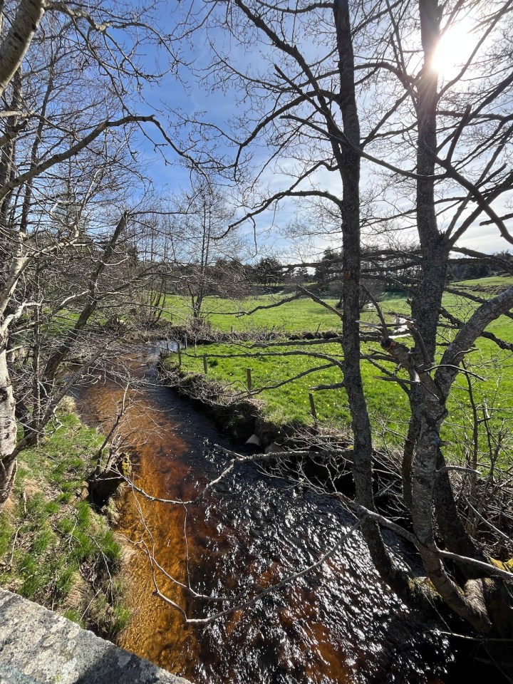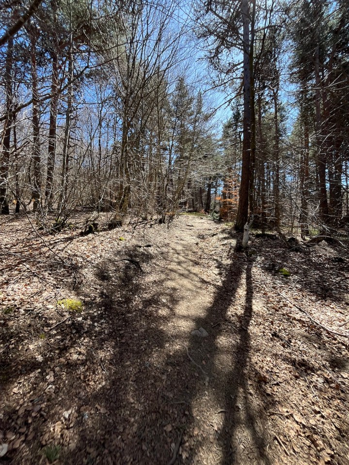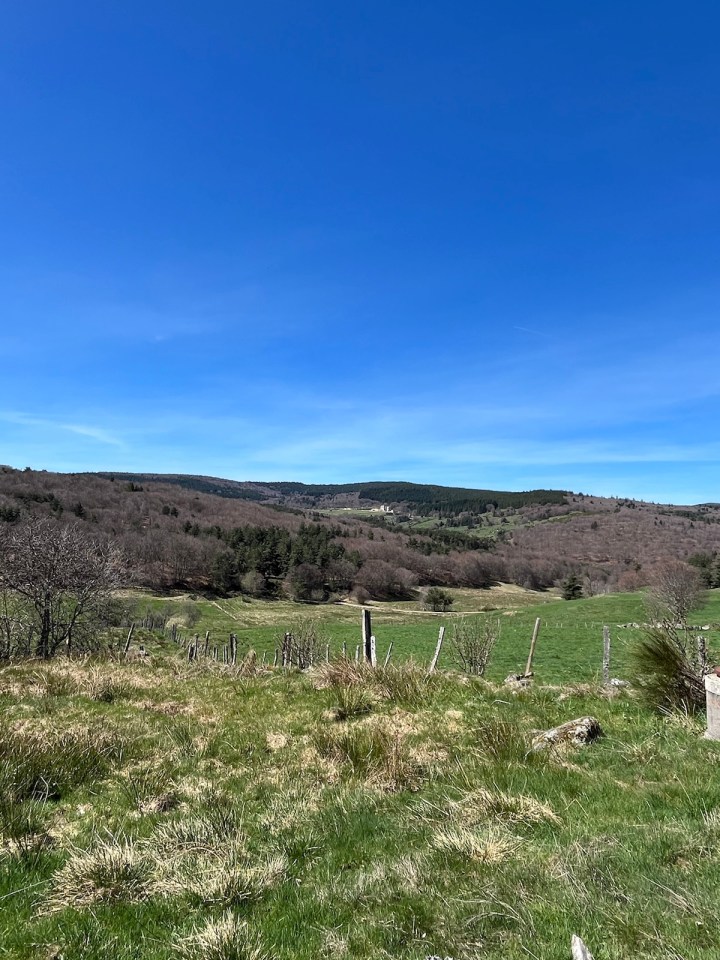 Alternance de petits hameaux de 2/3 maisons, champs et prairies, bois de résineux, et surtout des montées régulièrement et plus pentues les unes que les autres. Le soleil est de plus en plus chaud, crème obligatoire sur les avant bras, le visage et l’oreille gauche exposée à l’est toute la matinée.