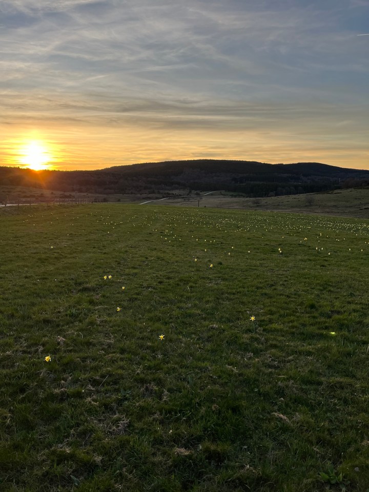 L’expérience au Sauvage est assez unique et je comprends pourquoi il faut anticiper son passage et y réserver : les 40 lits sont tous occupés et pourtant on ne sont pas le monde présent. Vue unique et calme garanti. Le coucher de soleil sur les champs recouverts de jonquilles sauvages est superbe.