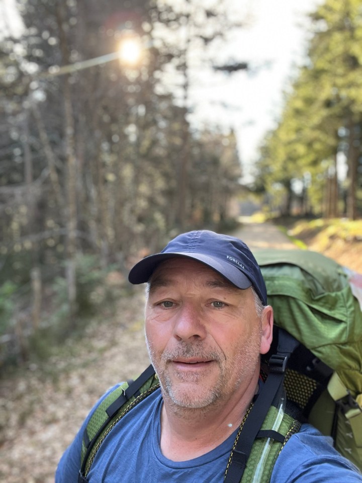 Le ciel est encore bien bleu ce matin, à 8h30 il fait bon le soleil chauffe tout de suite et rapidement j’enlèverai la polaire pour marcher en tee-shirt.