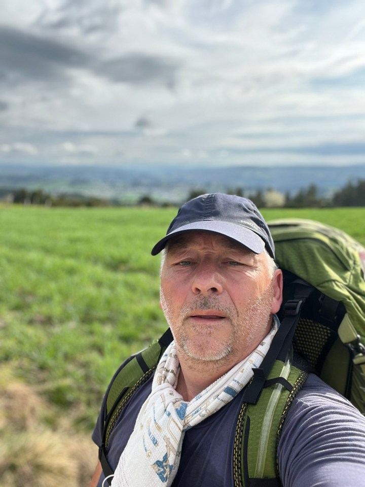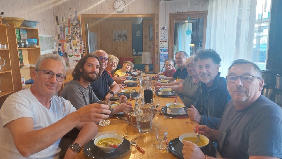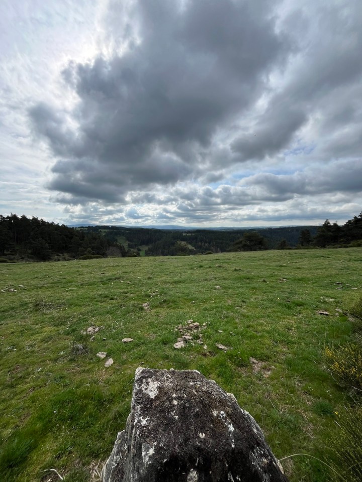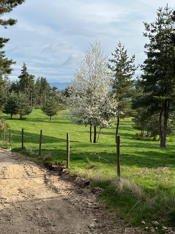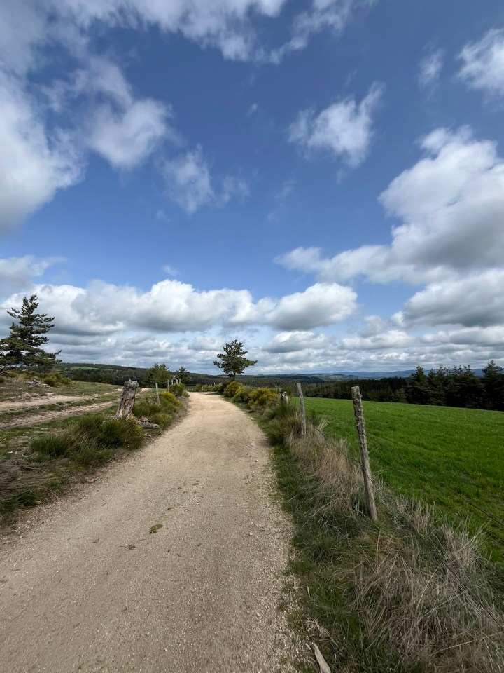 J’ai quitté le gîte de Fabienne et Stéphane vers 8h15, il y avait quelques nuages déjà sombres la journée sera fraîche. Nous y avons pris un dîner bon, simple et énergétique, avec deux nouveaux Clément et Jean-Christophe, ainsi que deux grand parents et leurs 3 petits enfants. Ils partaient ce matin pour 4 ou 5 étapes sur le GR65 vers Le Puy avec deux ânes. Fabienne et Stéphane en une vingtaine pour ce type de balade. Les mômes étaient excités comme des puces !!