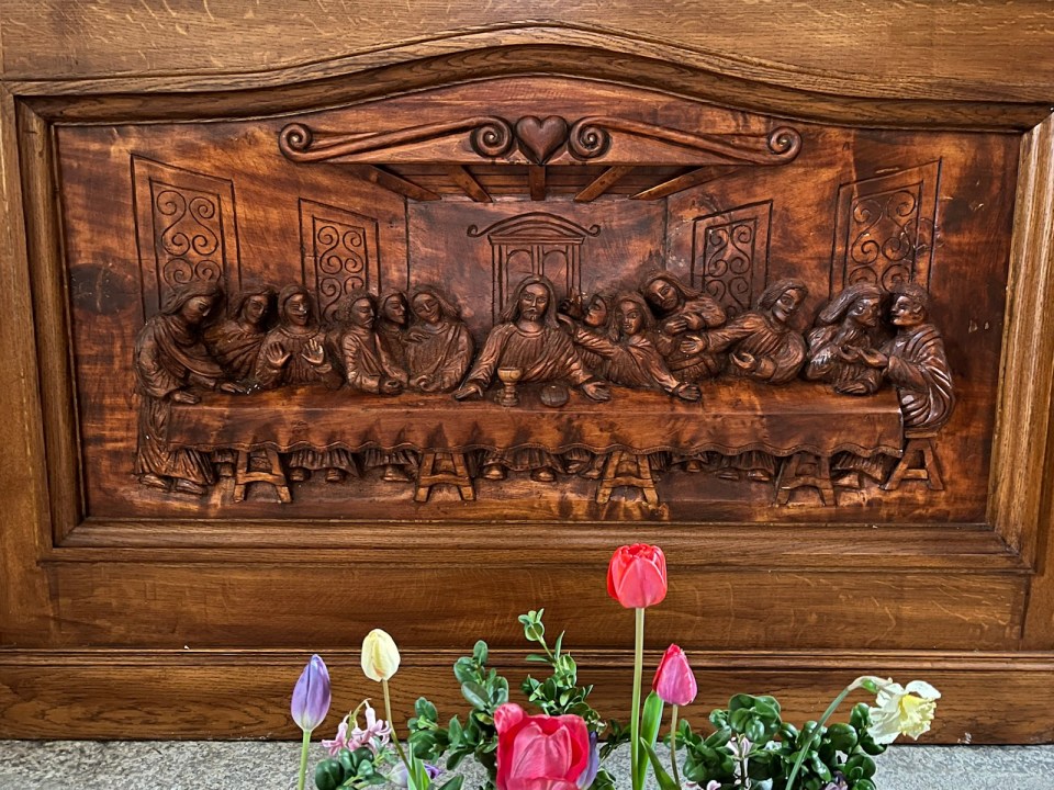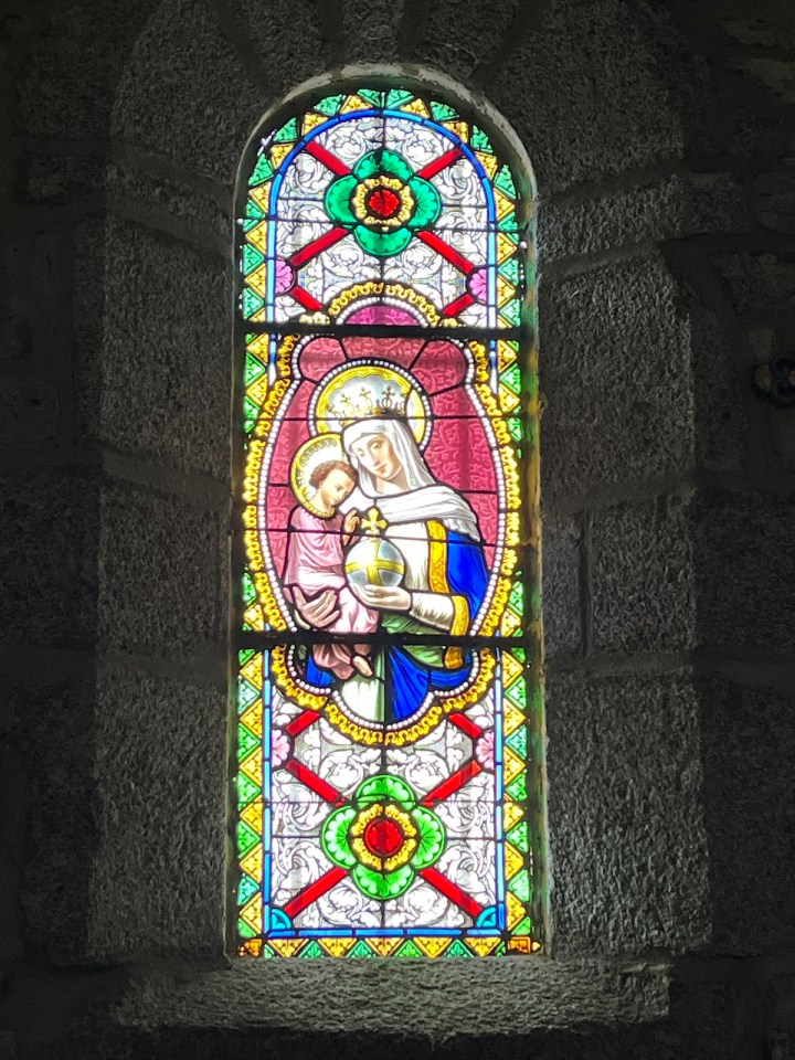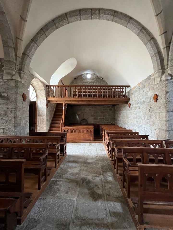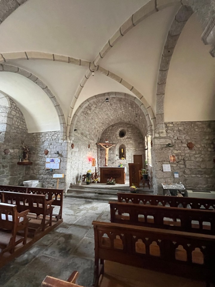 Son église est coincée entre deux maisons, toute petite et charmante, datant du 12 eme pour sa première construction.