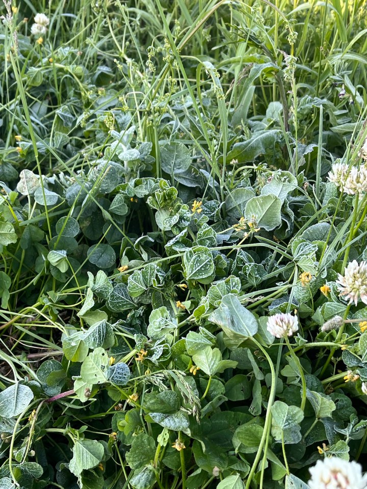 Une Holstein, race pas encore vue depuis le début, et quelques moutons en nombre. Les nuages sont là et au fond il pleut …