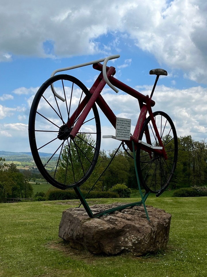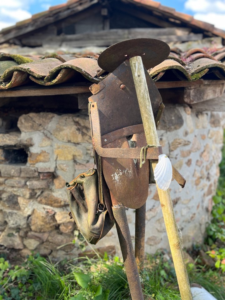 Mon bestiaire s’enrichit d’un superbe écureuil taillé dans du bois, on dirait vraiment « Scrat » accroché à son gland (je vous renvois à l’âge de glace, le film). Les nuages commencent à s’agglutiner on surveille du coin de l’œil. Et j’ai croisé un pèlerin de l’âge de fer.