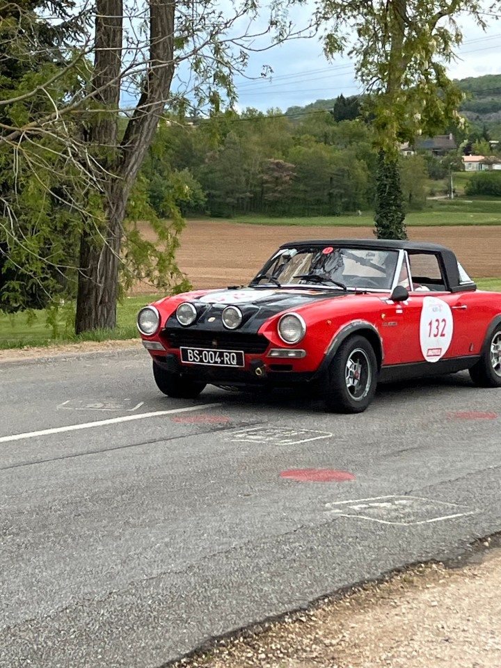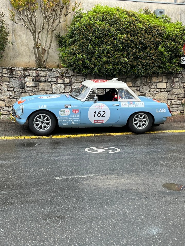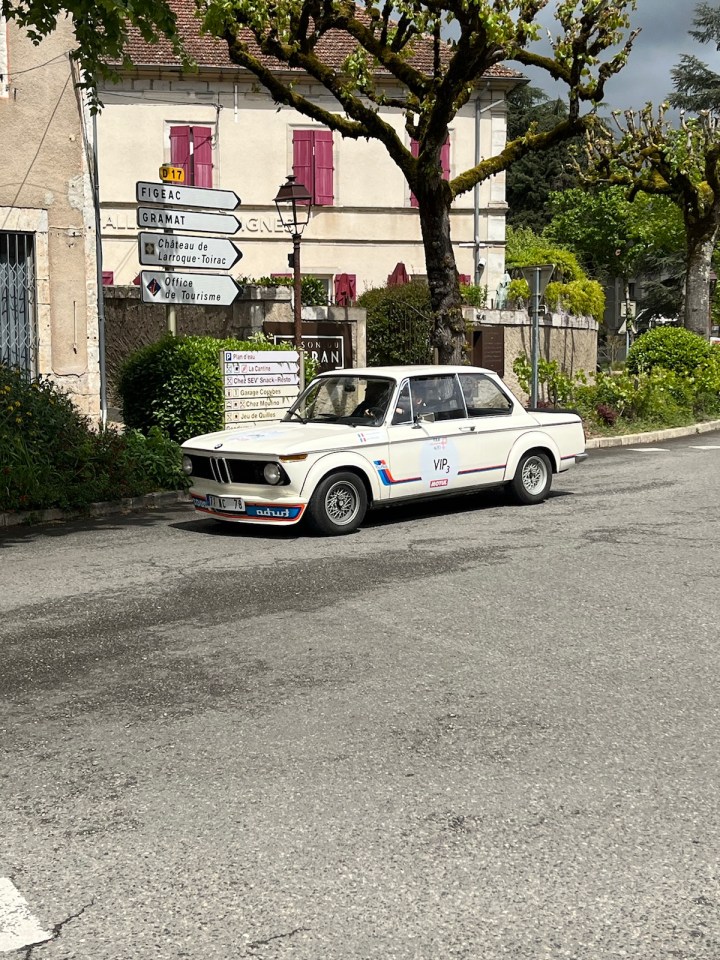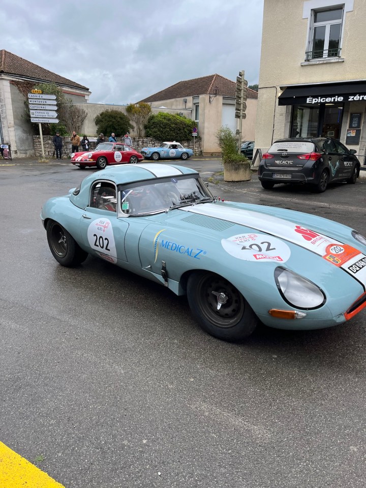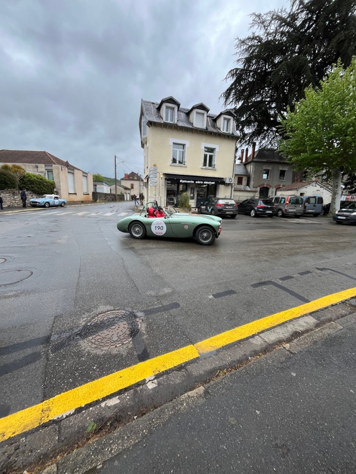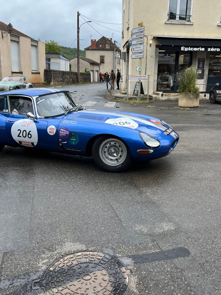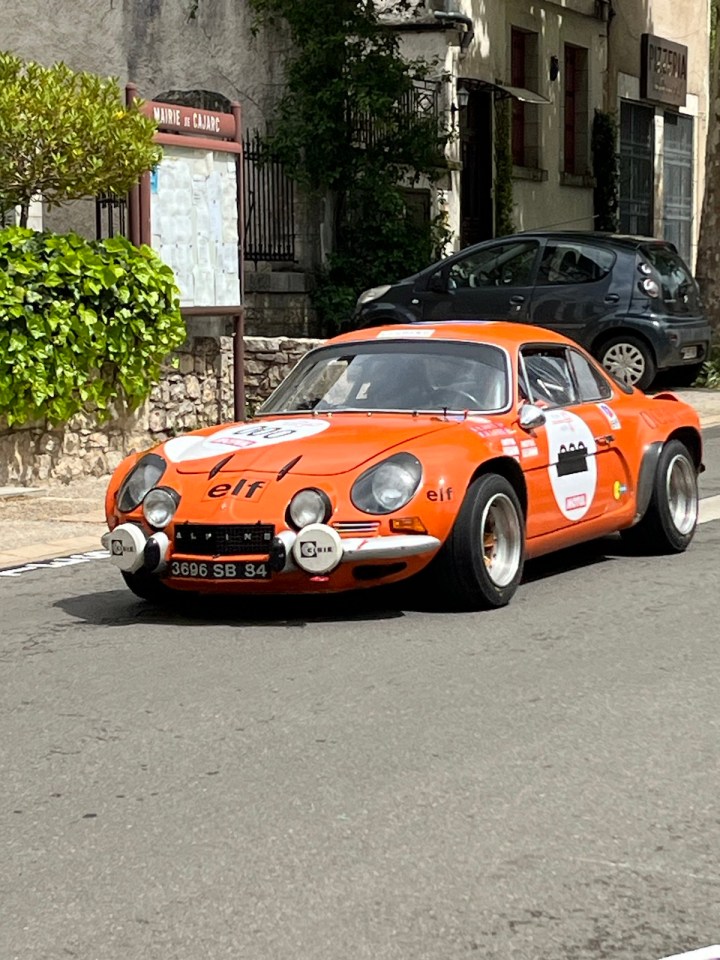A ce rythme j’arrive finalement peu avant midi à Cajarc, toujours sous la menace des gouttes. Encore une ville un peu endormie, mais une animation au centre m’attire : le passage des voitures du tour de France auto.