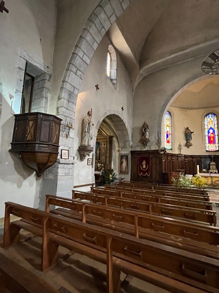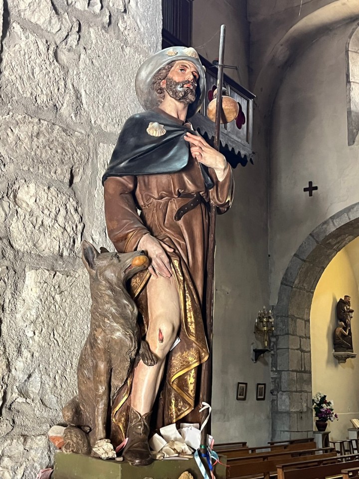 Et puis c’est reparti tranquille pour 3km avant d’atteindre l’adresse de ce soir. J’y cuisinerai mon dîner, ce sera sans doute pâtes sauce tomate (Juju si tu en veux… 😉). Je flâne un peu dans les rues, passage rapide par l’église, St Roch montre son genou blessé aux visiteurs.