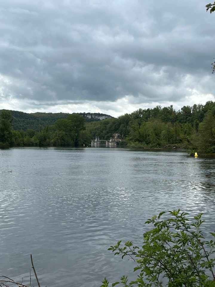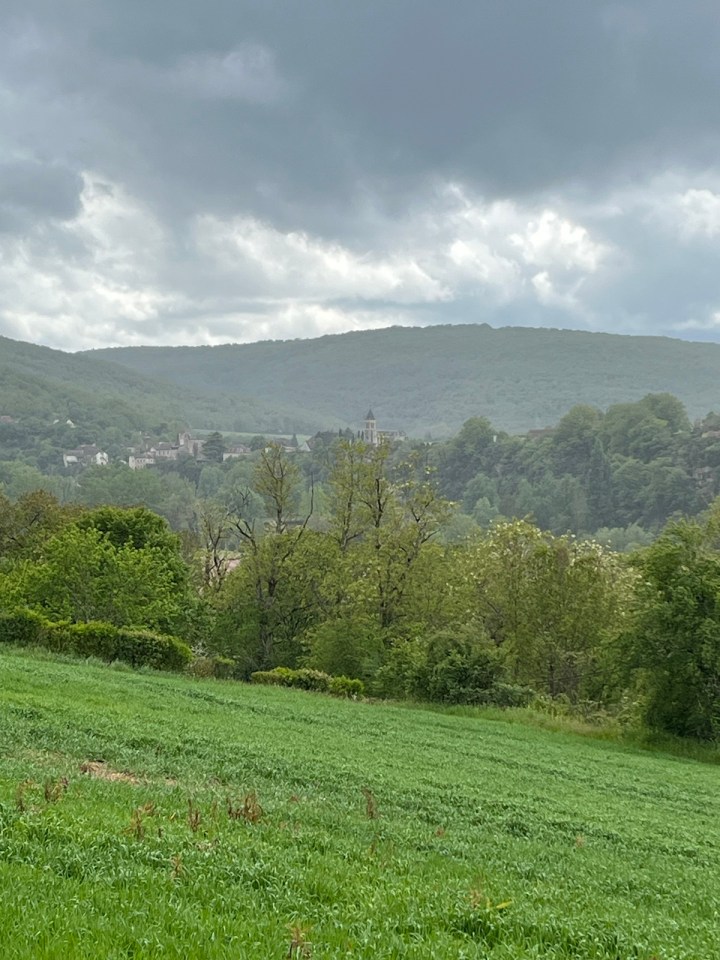 Donc c’est sous un ciel bien bas et lourd que Laure elle est partie pour 30km direction Limogne-en-Quercy, ce sera demain pour moi. Je ferai pour ma part un arrêt chez Moulinot, vendeur d’articles de pêche sur la place du marché à Cajarc.