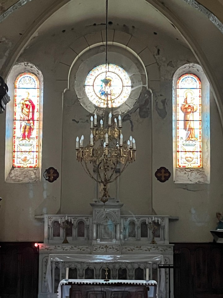 Au départ du gîte le temps humide m’a épargné en cessant de pleuvoir. Petit tour à l’église de Gaillac en passant devant, sobre et classique.