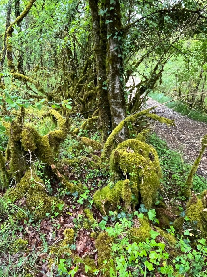 Ces bois sont remplis de petites cabanes en pierre, il y a même un chemin des cabanes. L’humidité est très présente, les murets sont recouverts de mousse.