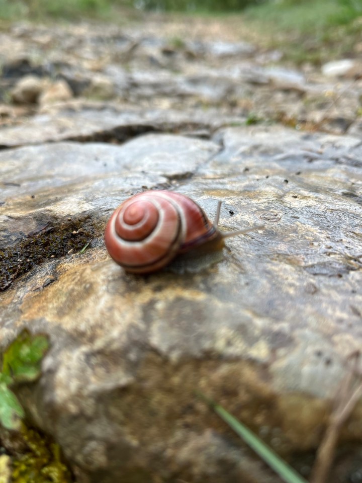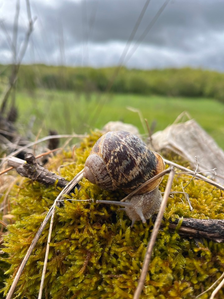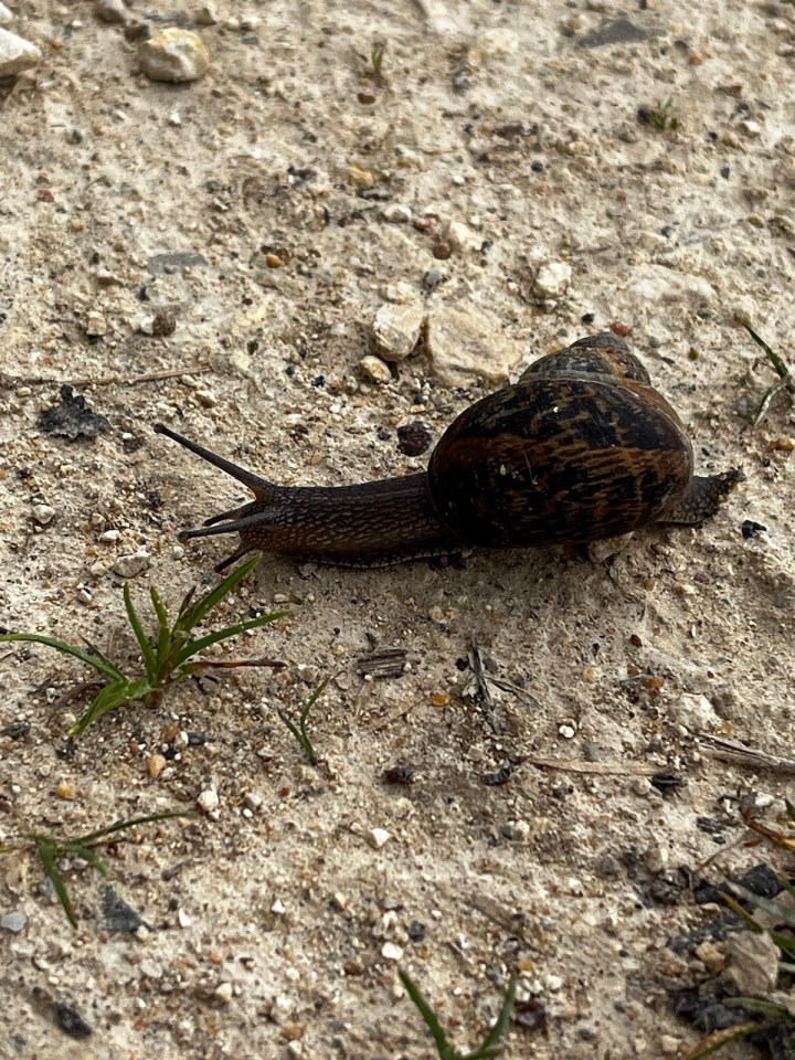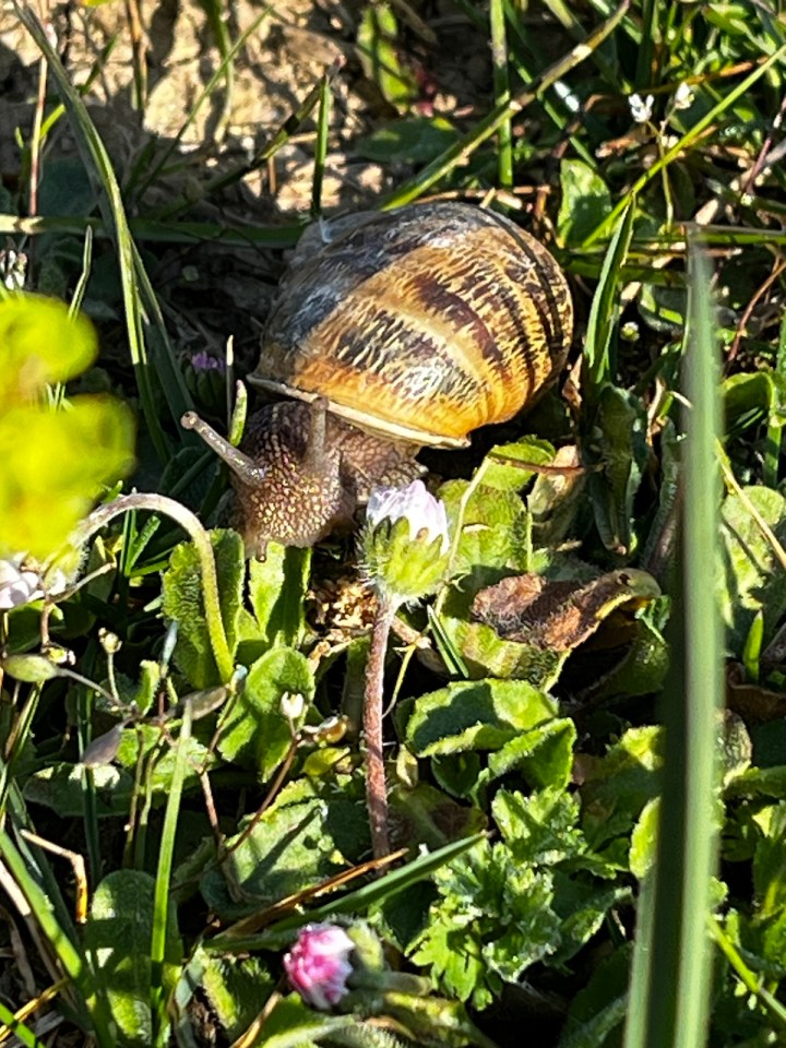 Toute petite journée avec à peine 16km, du coup je consacre un peu de temps en chemin à la sélection de spécimens pour l’héliciculture. L’héliciculture qui, vous le savez, consiste à élever des escargots. Non pas que je souhaite pratiquer cet élevage, mais comme il a bien plut cette nuit, le bord de la chaussée et des chemins étaient garnis. Voici donc un échantillon de Yves, Maurice, Raymond, Pierre et Cie.