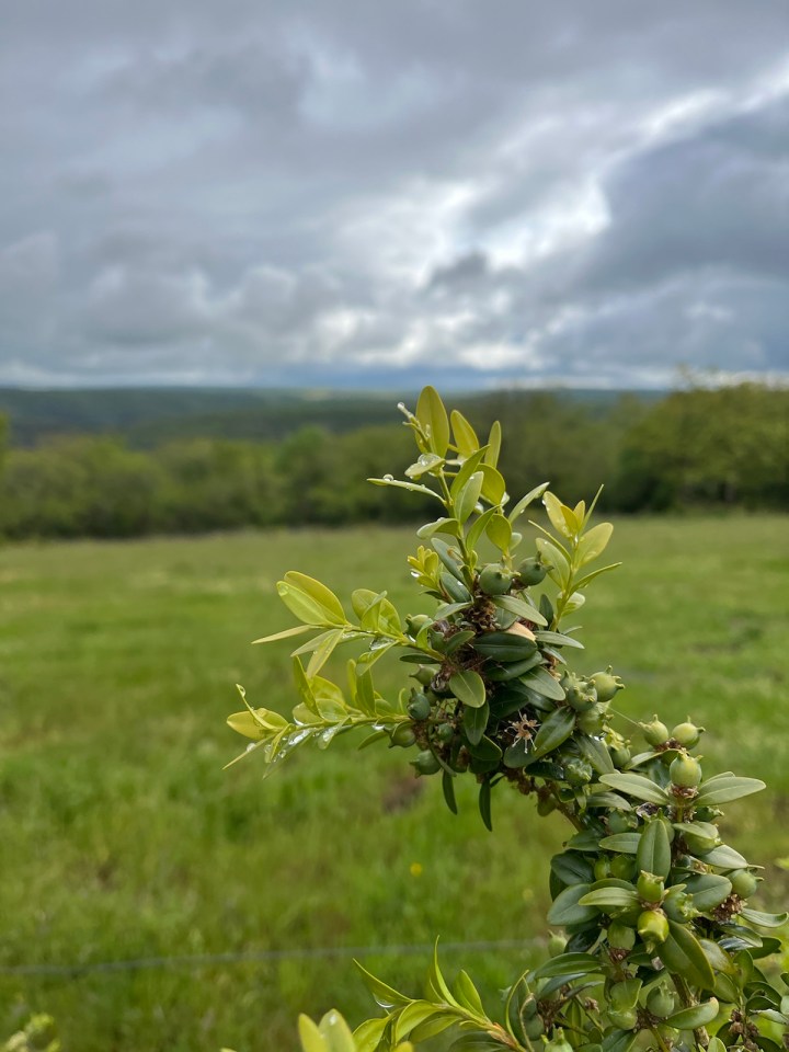 Après avoir grignoté une pomme et deux barres de céréales, je suis reparti, toujours en compagnie des cabanes bien conservées et retapées sans doute. Pieds humides de l’eau des chemins sur les herbes.