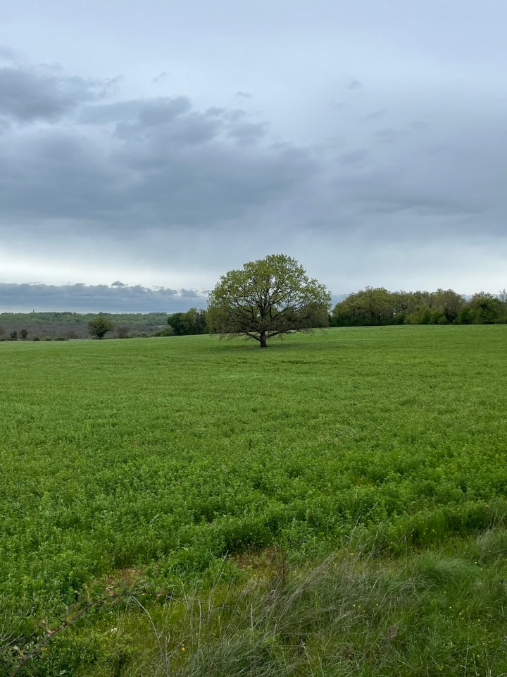Départ de Limognes en Quercy, la pluie menace sérieusement et le vent souffle fort. Ils annoncent des risques d’orage en fin de journée dans la région. Je ne m’éternise pas, en route à 8h15. Je vous laisse apprécier la masse nuageuse au dessus du village quitté peu avant. Ainsi que le front gris qui me fait face. Je vais surveiller du coin de l’œil toute la matinée les premières gouttes …