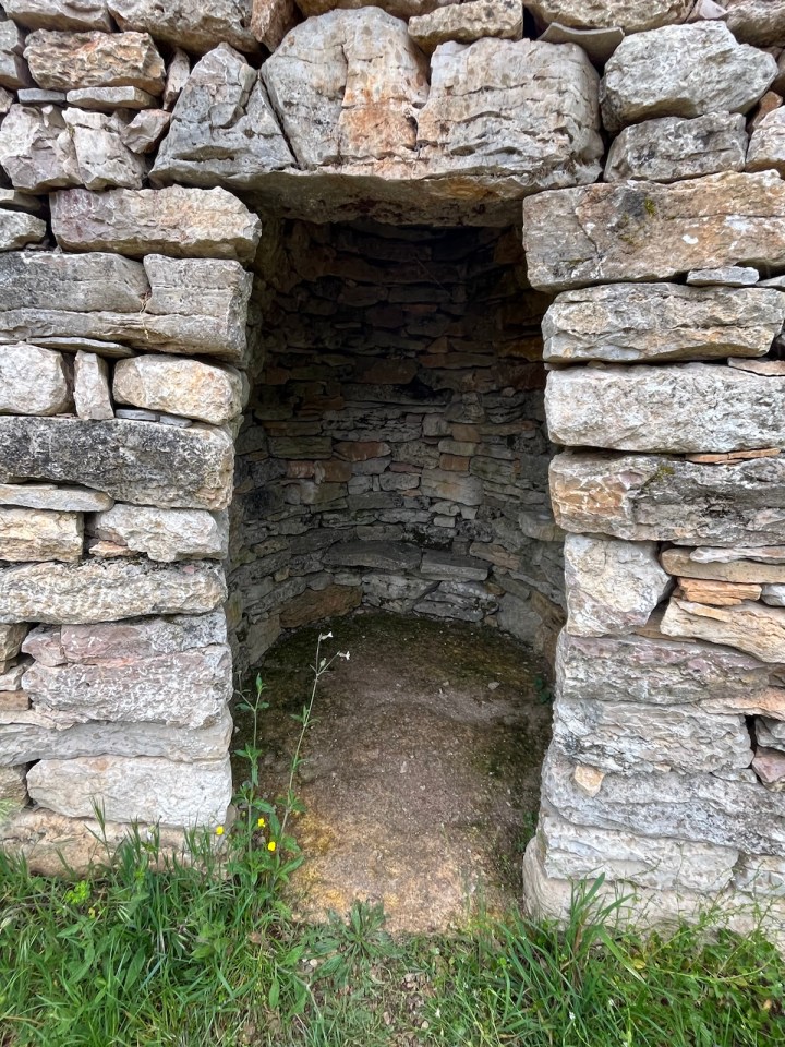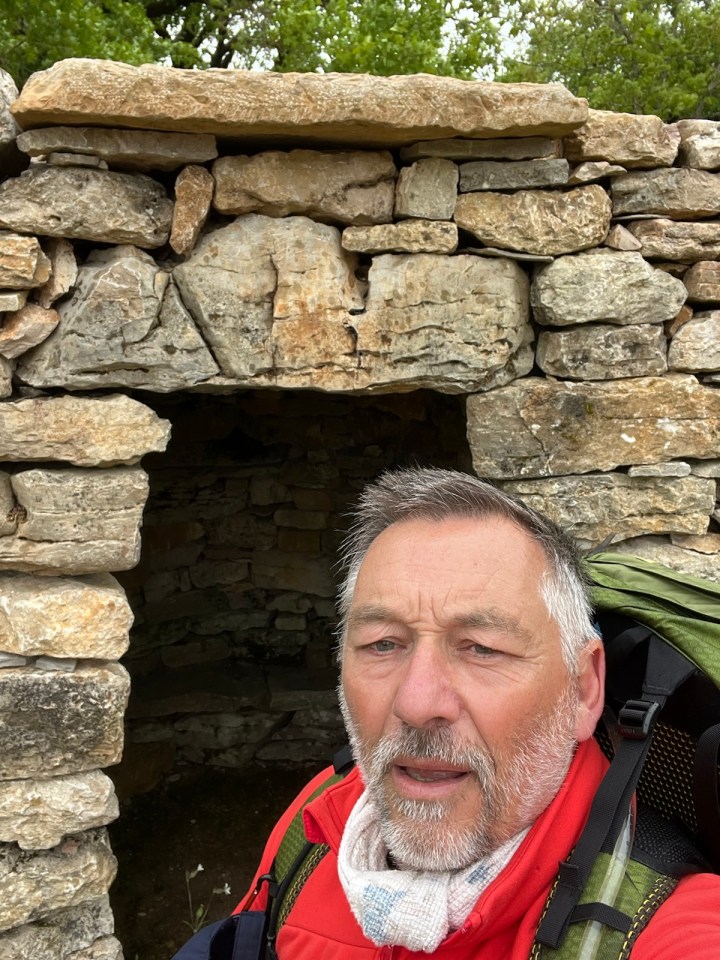 Sur le chemin rien d’extraordinaire à part des cailloux des cailloux et des cailloux : au sol, dans les constructions de réserve d’eau ou d’abris et surtout les murets tout le long. A mi parcours je rejoins les deux britanniques, Carrie et Diana, avec qui je partageais le gîte chez Benjamine. On discute un peu, tout va bien. Elles vont retrouver la sœur de Carrie, installée en Dordogne, qui les récupère à Varaire pour aller à Cahors dîner au steak house. Une affaire de quelques km encore pour elles.