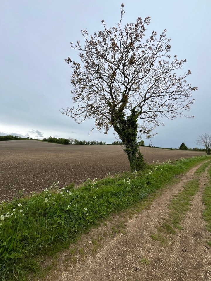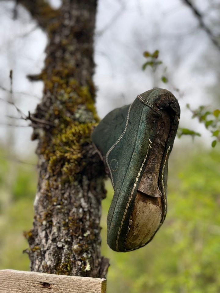Peut être aurai-je dû en profiter pour déjeuner un peu à l’abri, mais je continue. On entre dans une région de production de truffes. Des champs sont plantés de chênes et surveillés activement semble t il. Cette chaussure serait elle celle d’un mal avisé qui aura pris ses jambes à son cou ??