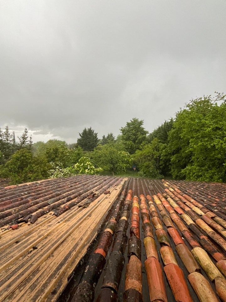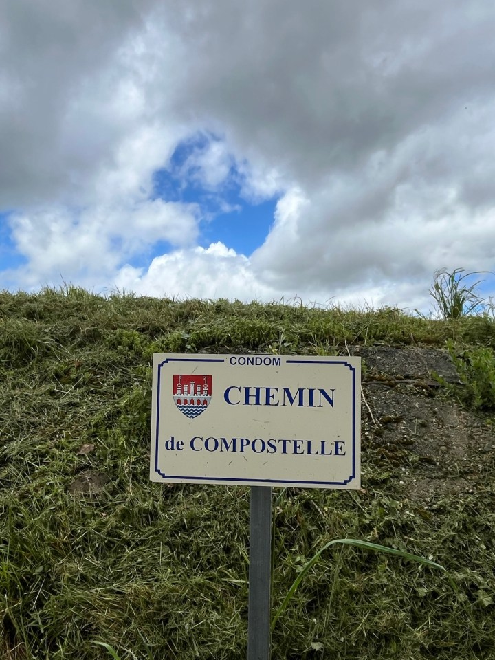Hier soir vers 18h ciel noir, pluie à verse et coups de tonnerre … j’annule le resto réservé à 800m de là : pas envie de finir en serpillère à deux pattes. Du coup je me félicite des courses faites à Lectoure : sardines à l’huile, raviolis, pomme !! Dîner simple rapide excellent !!! En tête à tête avec moi même. De toute façon hier soir je partageais la chambre avec une américaine Carla du wisconsin qui a passé son temps au téléphone, et à côté deux belges flamandes (pour elles il n’y a que des belges…). Néanmoins Marlène et Sophie, sa belle fille, ne parlant que peu le français le dîner seul fut très bien. D’autant que j’appris au petit déjeuner que malheureusement le fils de Marlène est décédé en décembre dernier, et bien qu’il était séparé de Sophie avant elles sont restées très proches.