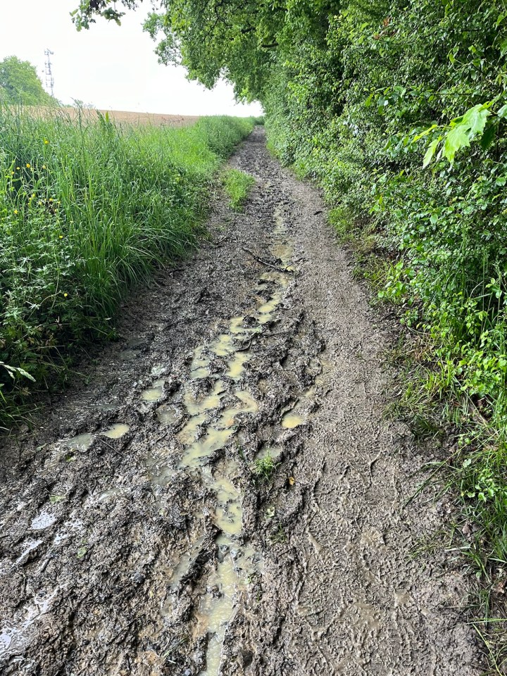 Pour en revenir à la journée la dernière photo annonce la couleur : avec toute la pluie de la nuit les chemins sont de nouveau détrempés.
