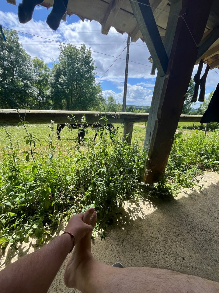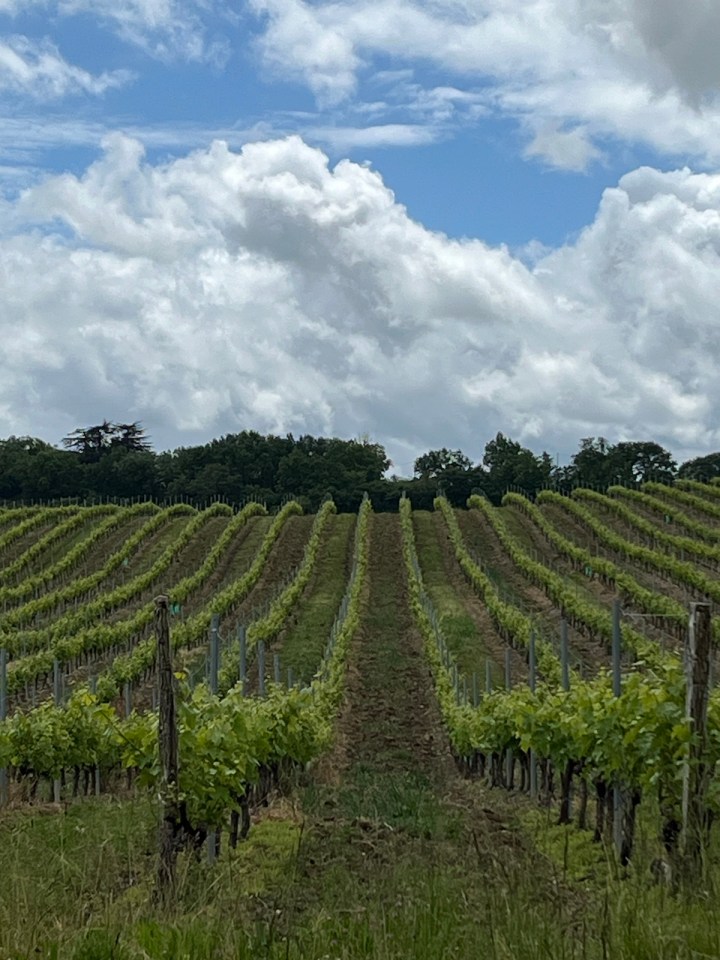 Peu après 13h les nuages s’estompent un tout petit peu… les vignes sont de plus en plus présentes sur ce chemin de compostelle. Et me voici rendu à destination à la ferme du Taullet. J’espère que le dîner sera à la hauteur des espérances données par leur pancarte d’accueil ☺️.
