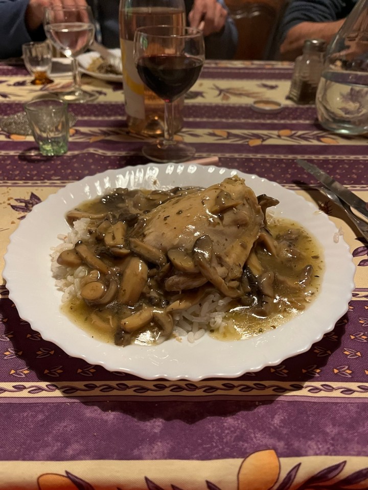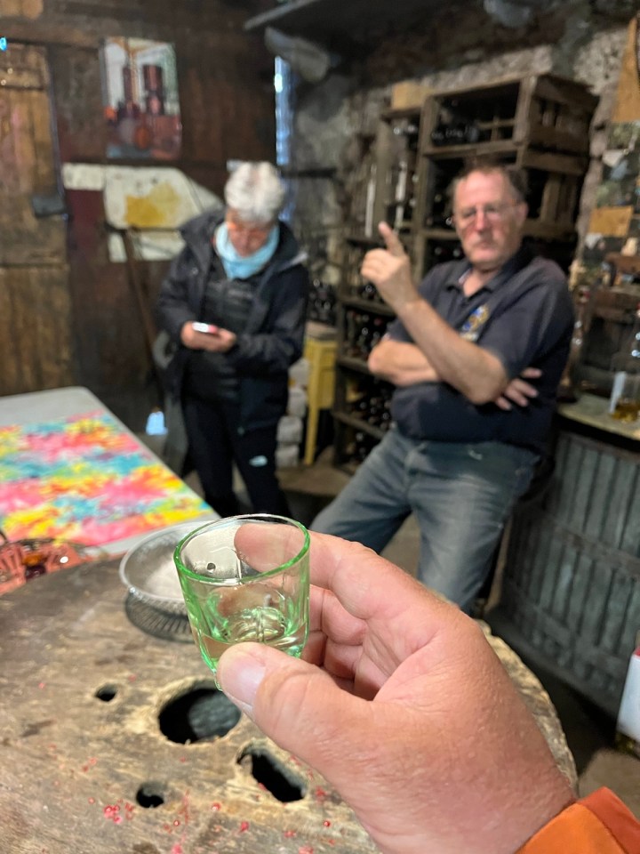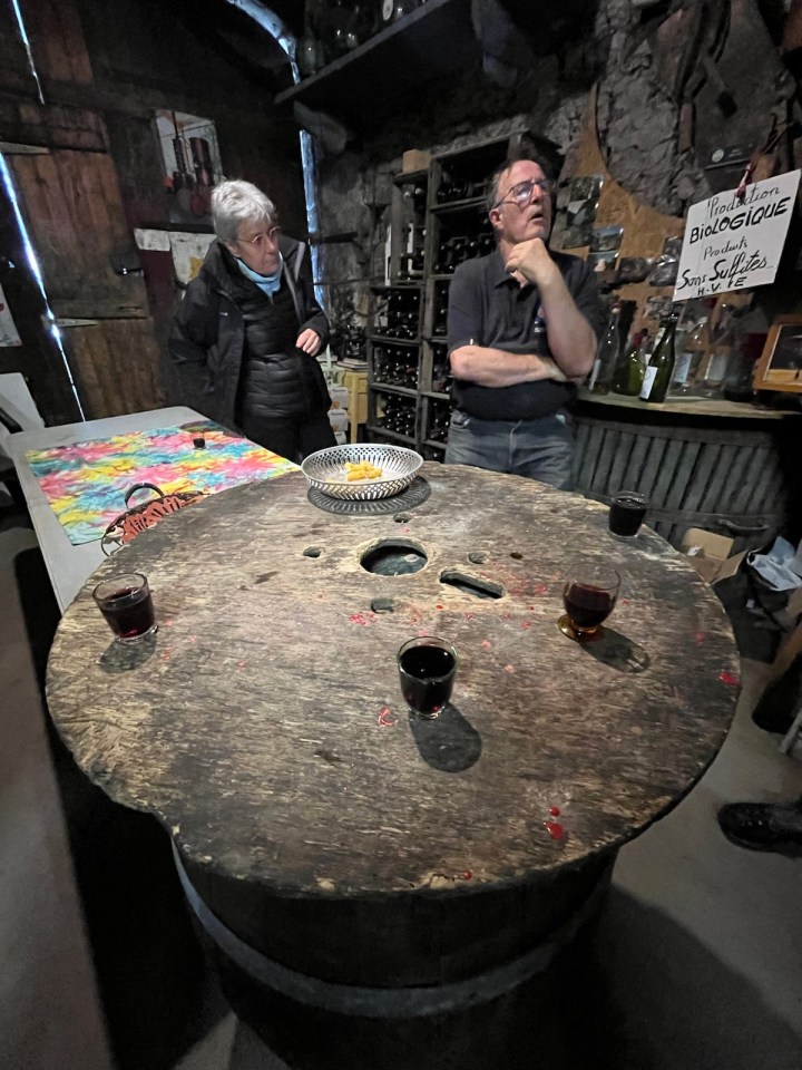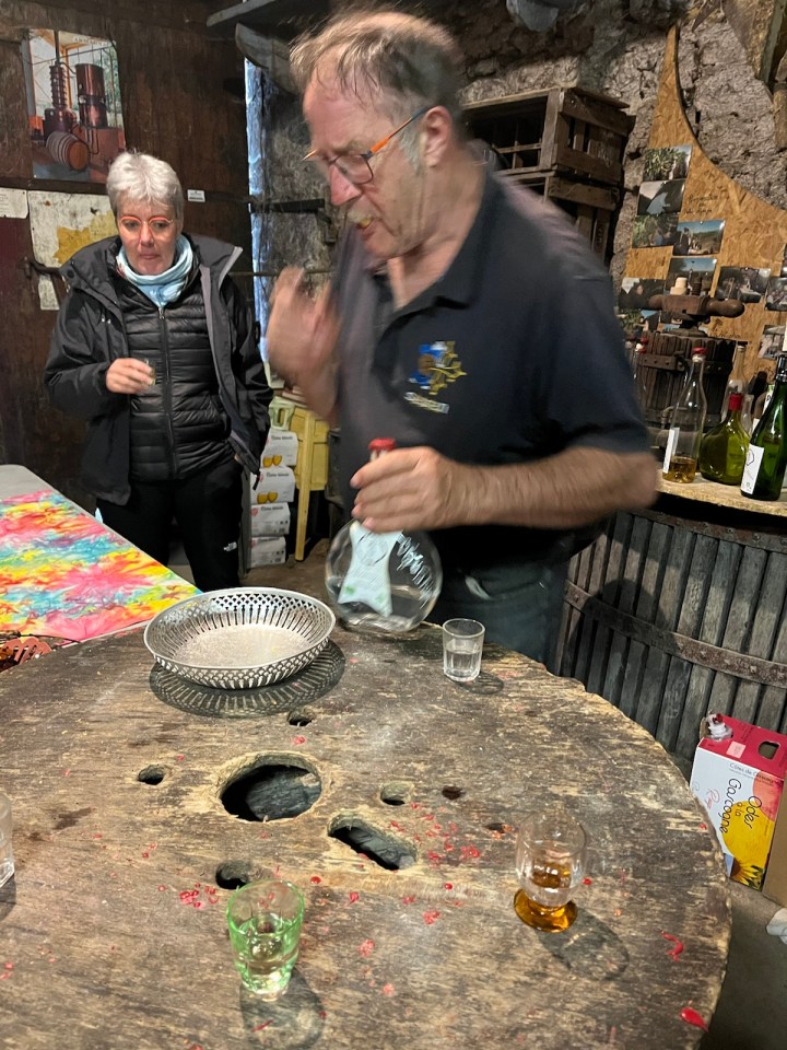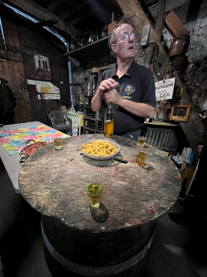 Je vous partage en vrac l’accueil dégustation apéritif qu’il nous a fait à 19h30 avant le dîner. C’est presque inhabituel car le dîner dans les gîtes a lieu plutôt à 19h. Nous avons testé le Flosc de Gascogne, rouge puis blanc et pour finir un armagnac 11 ans d’âge, 57 degrés. Laurent a repéré un jambon en fin de maturation accroché au plafond … Alain ne jure que par les pèlerins du chemin qui viennent aussi faire les vendanges (je vous renvoie à la vidéo). D’ailleurs Jean-Pierre, routier retraité de la région Nantaise, a pris rendez-vous pour les prochaines …