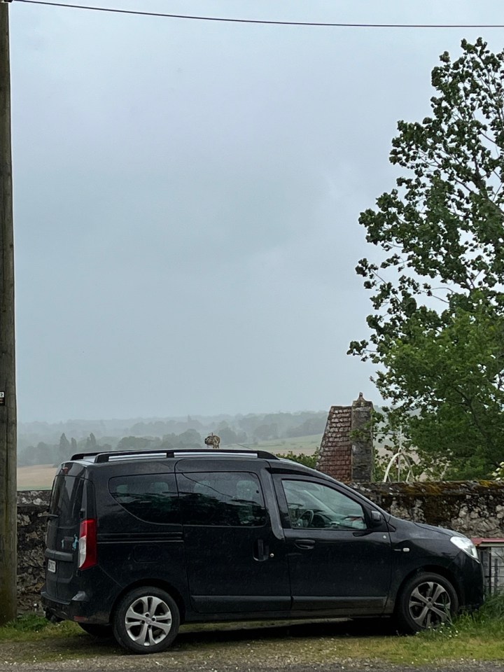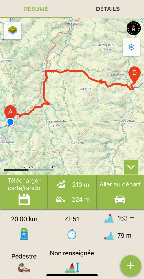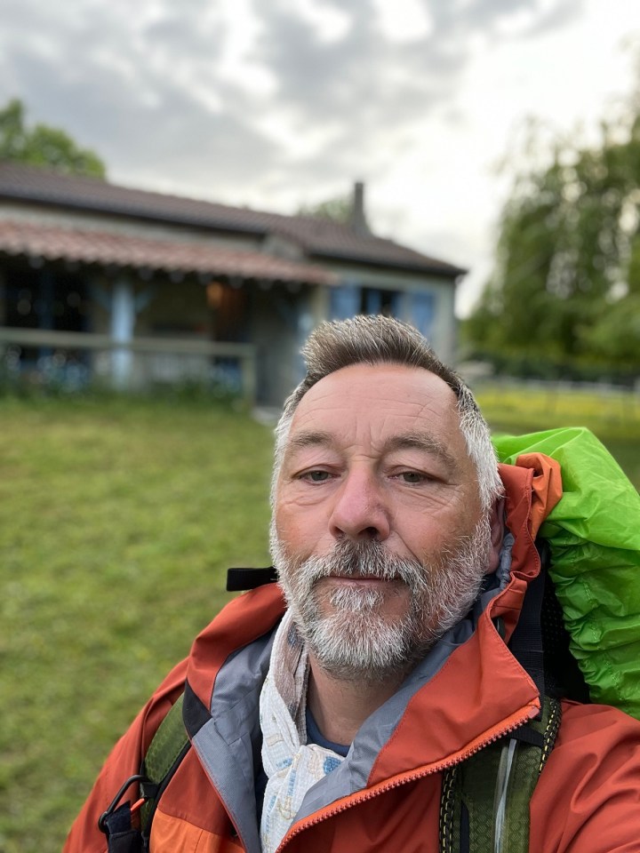 Je fais la halte déjeuner à Montréal du Gers, j’y retrouve les deux copines de Thierry, Astrid et Suzanne, elles te passent le bonjour d’ailleurs et espèrent te revoir. Accélère disent elles 😄. Une averse se met à tomber fortement, je prends mon temps et discutons tous les trois. Une fois le ciel plus clément je repars, le gîte de destination est à 8km, l’affaire de 2 petites heures.