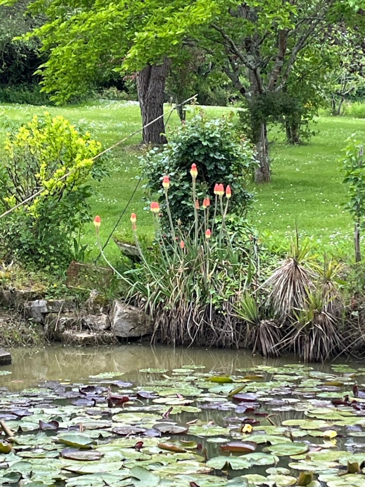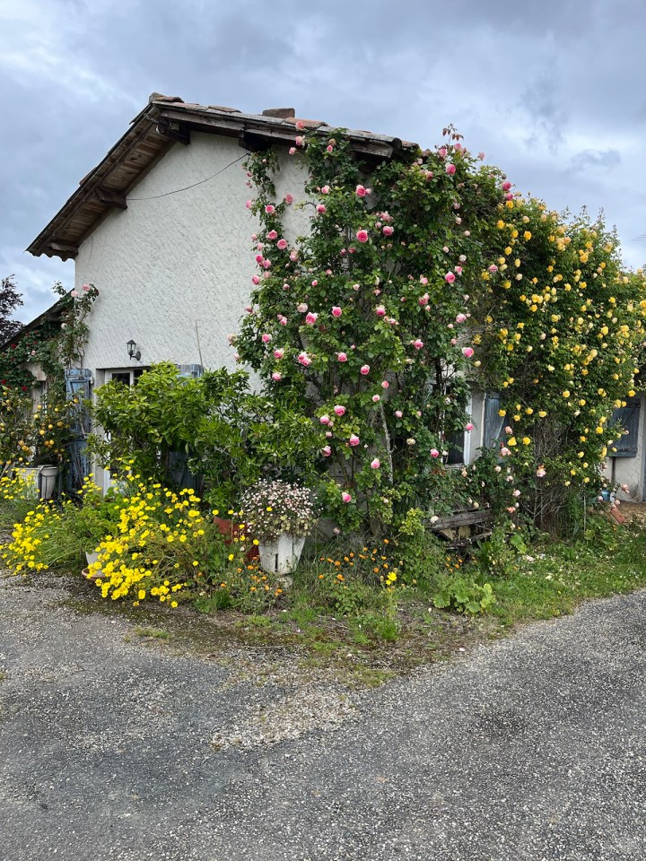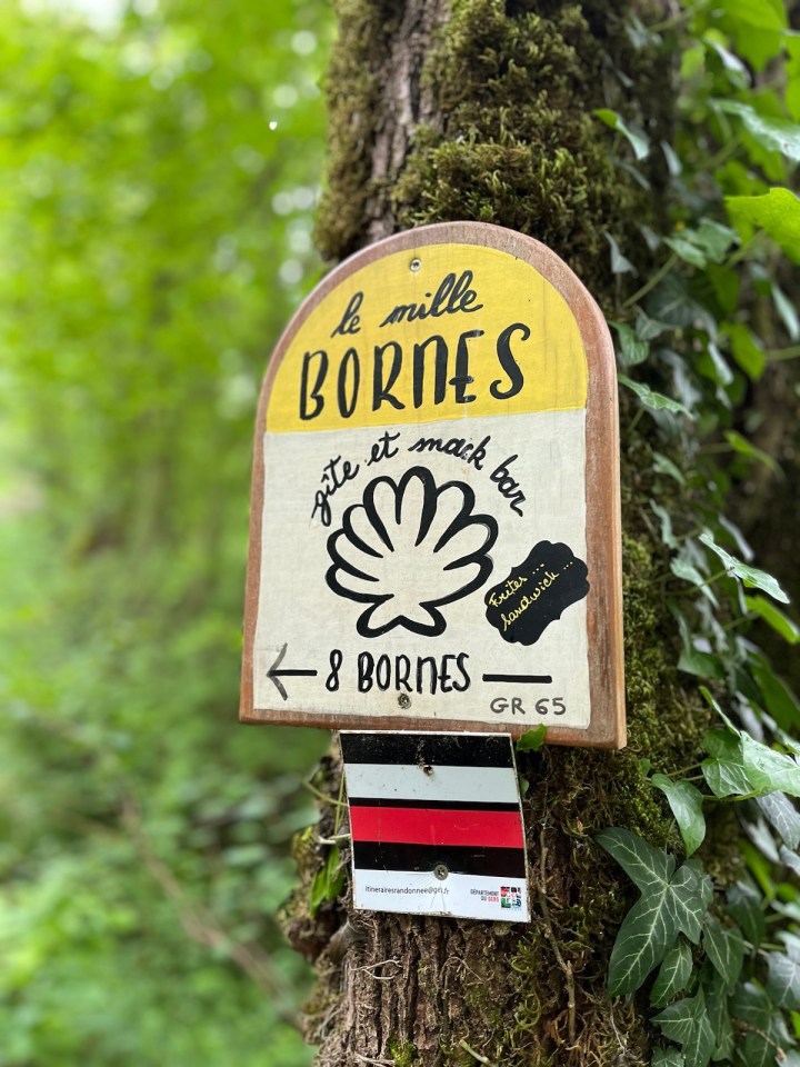 Il y a sur le parcours de superbes jardins très fleuris, de bons amateurs de plantation et d’entretien, je leur tire mon chapeau parce que ce n’est pas mon passe temps préféré. J’arrive finalement au « mille bornes » le gîte de ce soir. J’y retrouverai plus tard Astrid et Suzanne qui arriveront et attendront leur responsable de gite hors chemin venu les chercher en voiture. Ainsi que Astrid et Jean-François rencontrés il y a quatre jours et croisés à nouveau samedi lorsqu’ils cherchaient un gîte de remplacement. Et enfin Carla qui partageait la chambre du gîte à La Romieu. Bref on se croise et se décroise sur ce chemin sans arrêt. Une fois posé, douché et lessive faite la pluie s’est mise à tomber d’un coup en mode intense … demain Soleil ??? Je m’adresserai à Mme Irma et plus Mme Météo …