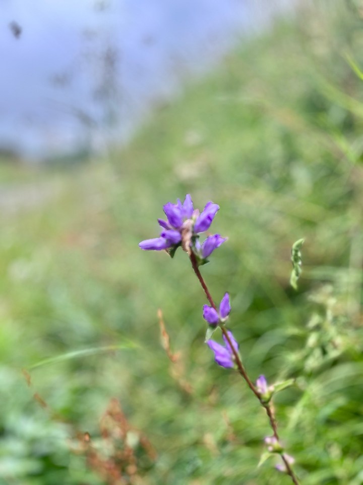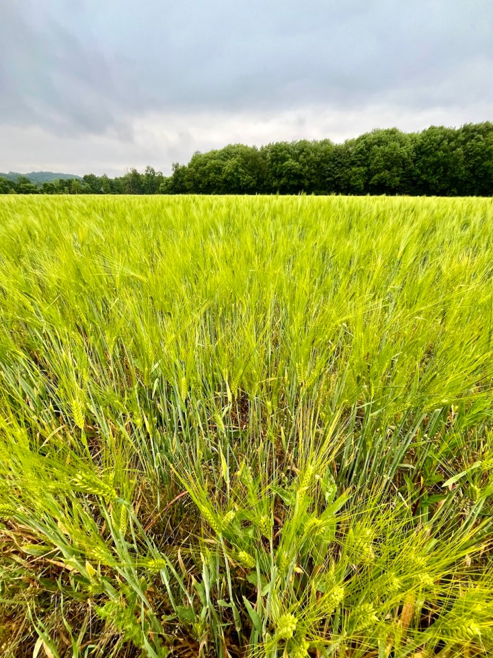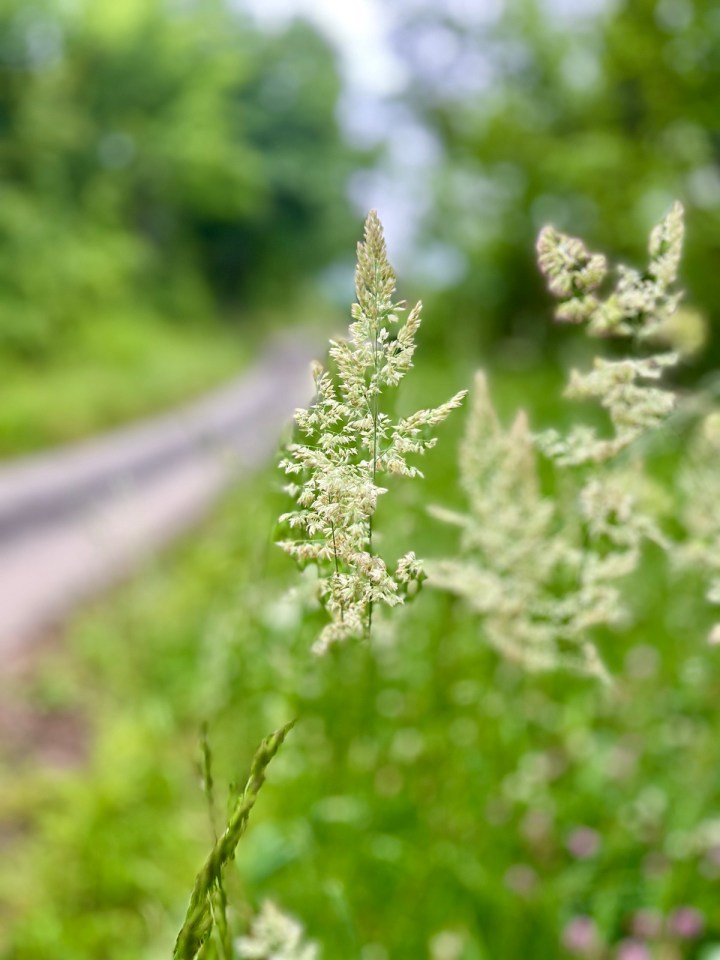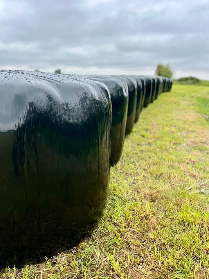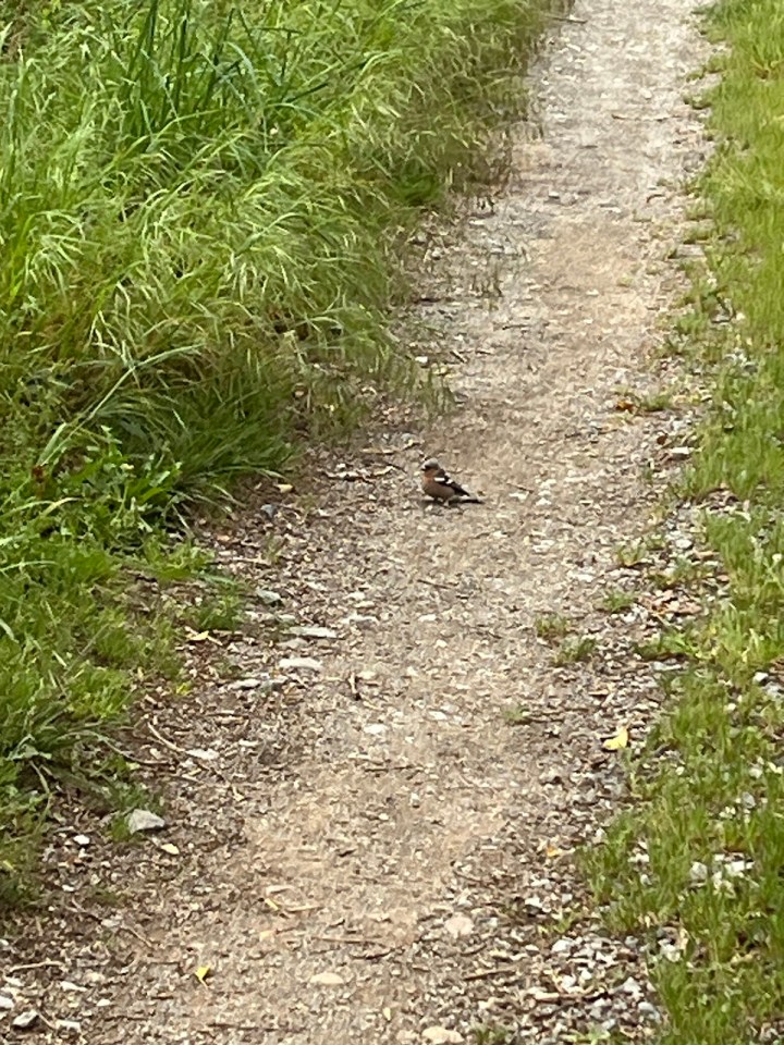 Je croise enfin du bétail à nouveau, plus de champs mais des pâturages, je les approche pour une photo, elles posent dirait on. Les foins ont été coupés et emballés déjà, prêts pour l’hiver prochain. Un petit oiseau fera des efforts inouïs et preuve de courage pour attirer mon attention. Sans doute en passant dans le chemin je suis proche du nid, du coup il sautille devant moi tant que je suis trop près. Je réussirai à le photographier malgré ses sauts répétés.