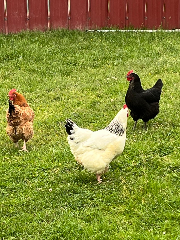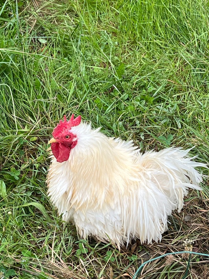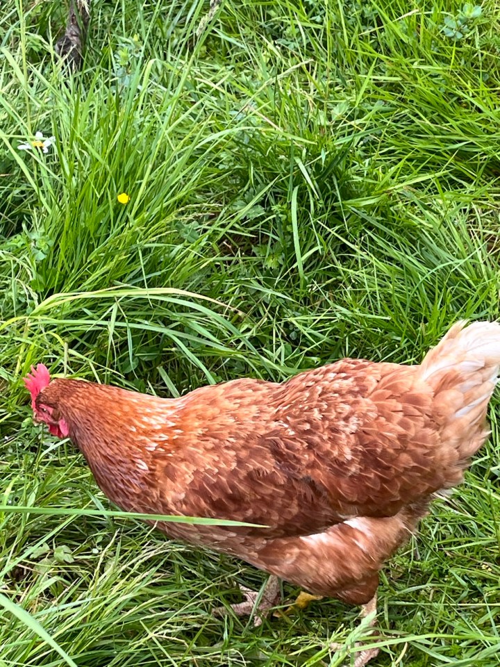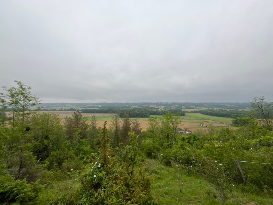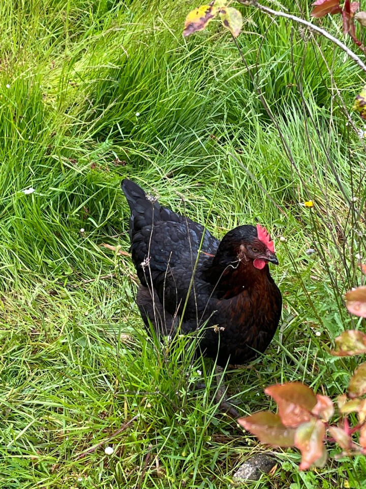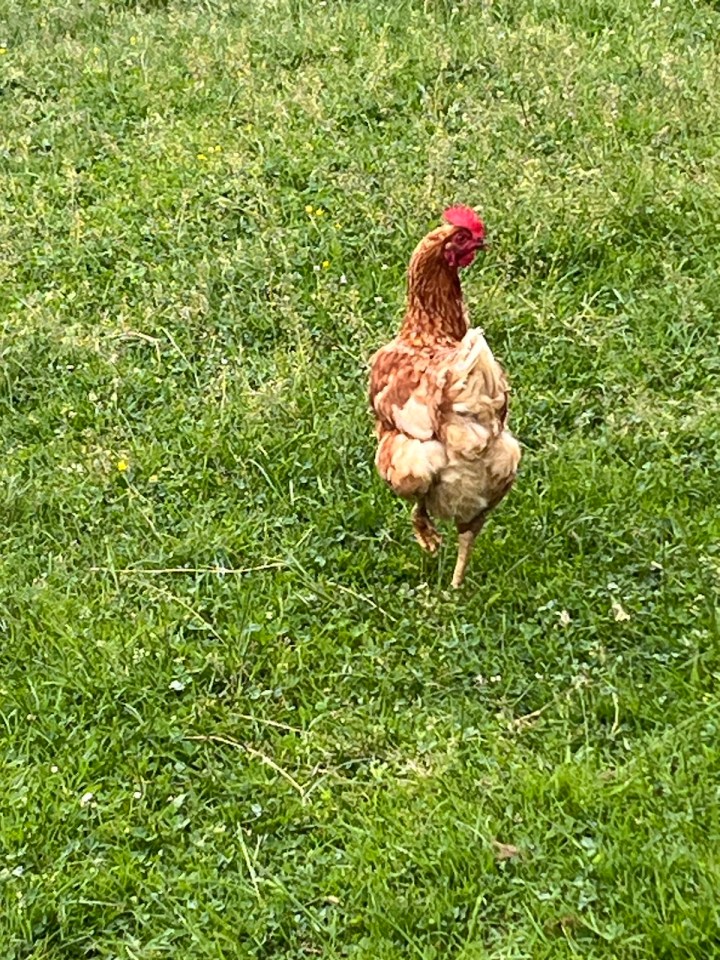 Le chemin du jour sera bien plus agréable qu’hier. Hormis 2km de bitume au départ et 2 autres à l’arrivée, le reste sera en sous bois ou entre des champs. Du coup la flore est plus variée : je capture un pêcher chargé de fruits qui mûrissent tranquillement. J’adore les poules, quand je les photographie on dirait qu’elles posent.