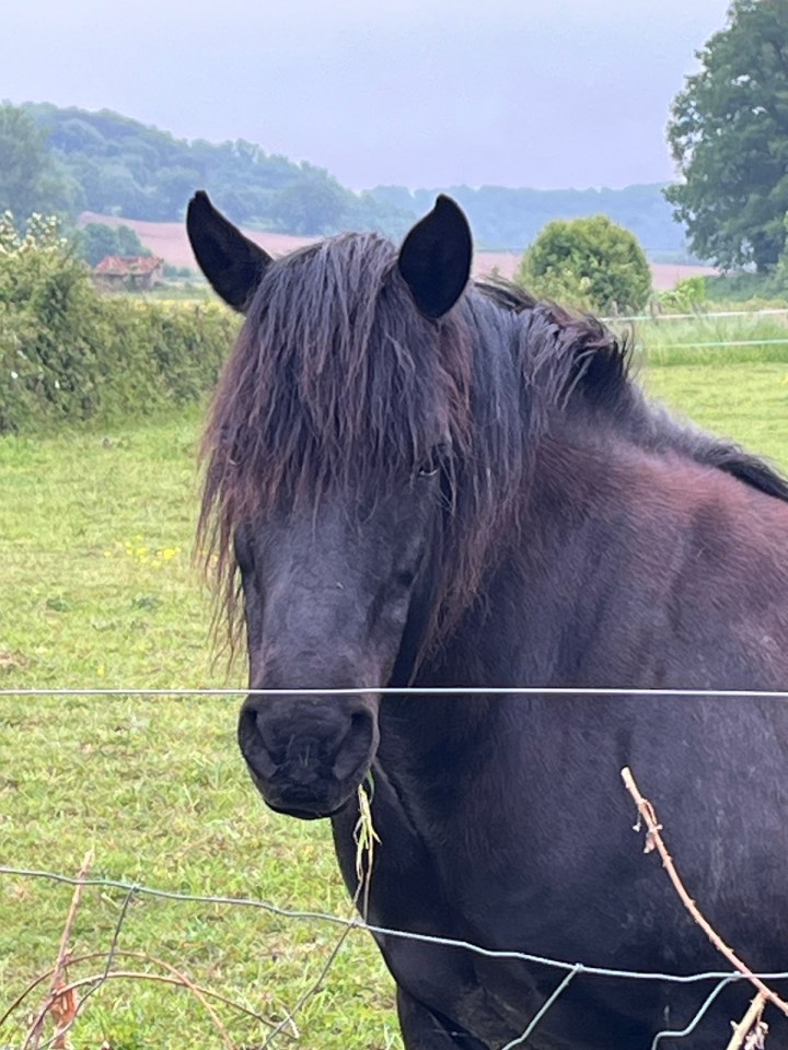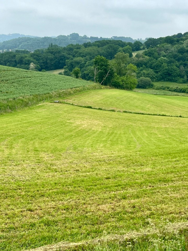 Je ne vais pas tarder à me rendre compte que le changement vers le 64 s’opère rapidement : d’abord la topographie. Dès la sortie du village je vais enchaîner des petites montées et descentes passant d’un versant à un autre de colline. Plus d’immensité de champs quasiment. Le vert est plus présent partout. Un magnifique cheval me salue au passage, alors que juste après on voit que les chevaux mécaniques sont mal en point eux. Un peu plus de 900km pour Compostelle, j’en aurai 770 à St Jean pied de port.
