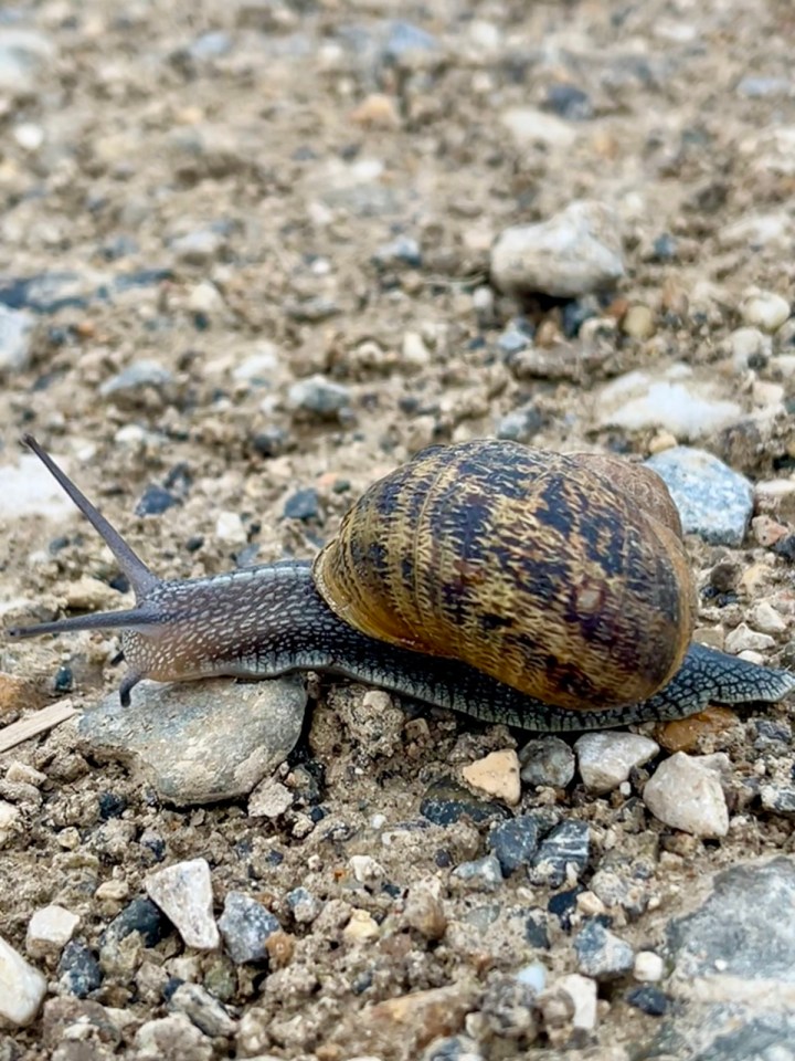 Les derniers champs que je longe sont en activité. Nous sommes dimanche mais les semaillent ne sont pas finies. Les tracteurs s’affairent, c’est pour du maïs à cette époque tardive. Ils profitent des 4-5 jours sans pluie pour bien herser puis semer, la terre est humide à point mais pas trop. Je ne résiste pas à faire poser cet escargot, magnifique spécimen je trouve. Rapidement j’ai rejoins Arzacq, à 4km du départ, où un dessinateur humoristique à laissé exposé son œuvre. Pause café croissant au village, c’est dimanche !! Peu de monde sur le chemin pour l’instant et en fait je marcherai tout seul toute la matinée. Moment agréable car aucun bruit de circulation, juste les oiseaux et la nature.