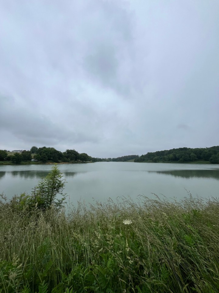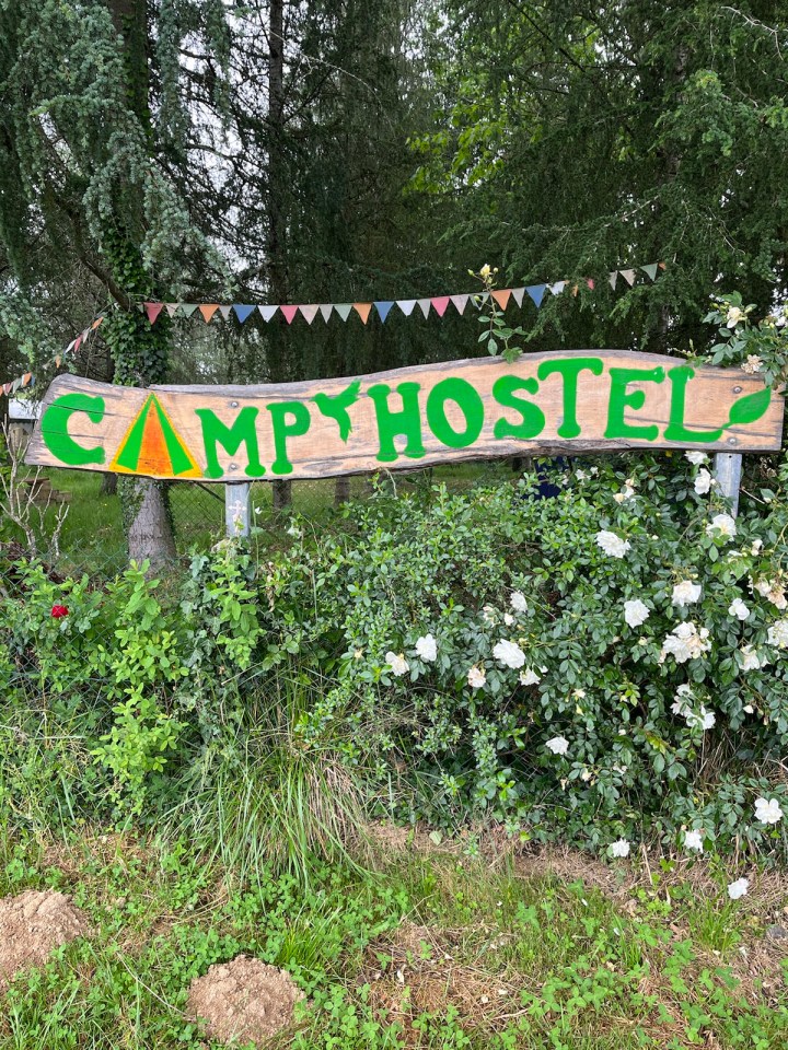 A la sortie du village un chemin longe un immense étang, quelques pêcheurs tentent leur chance. Un espace de camping est disponible un peu plus loin pour les itinérants, un vieux chêne attenant sert de réceptacle à reliques pour ce « camp’hostel ». Encore des poules, et la confirmation que le terrain se vallonne de plus en plus.