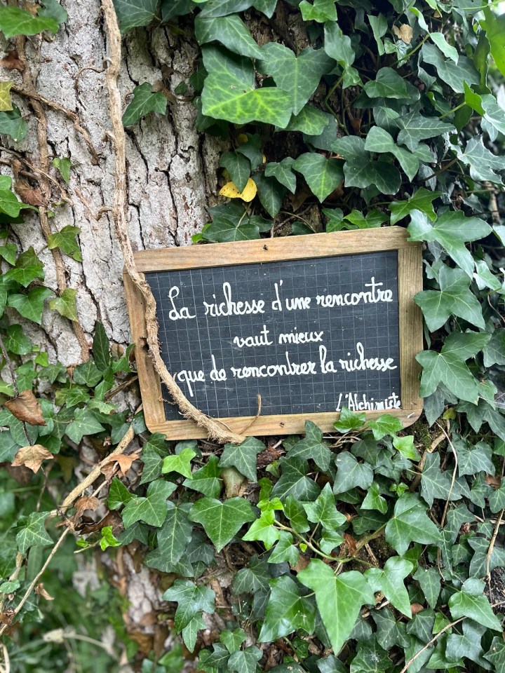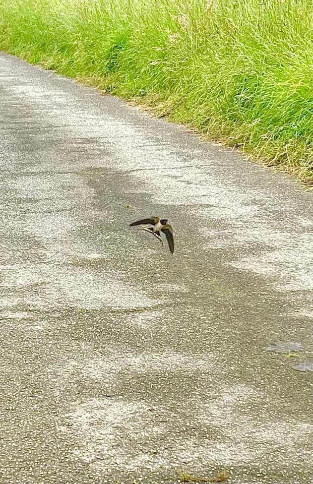 Une nouvelle ardoise de l’alchimiste est accrochée dans un arbre, je vous laisse juger de la justesse du propos. Magnifique demeure que ce moulin de Louvigny. Juste après sur une portion de route un couple d’hirondelles faisaient des allers retours pour capturer des insectes. J’ai essayé de me faire oublier sur le bas coté et de capter leur passage : leur vol est une prouesse de rase motte près du sol et de virages à 90 degrés en quelques centimètres !!! Pas facile de les attraper avec mon iPhone.