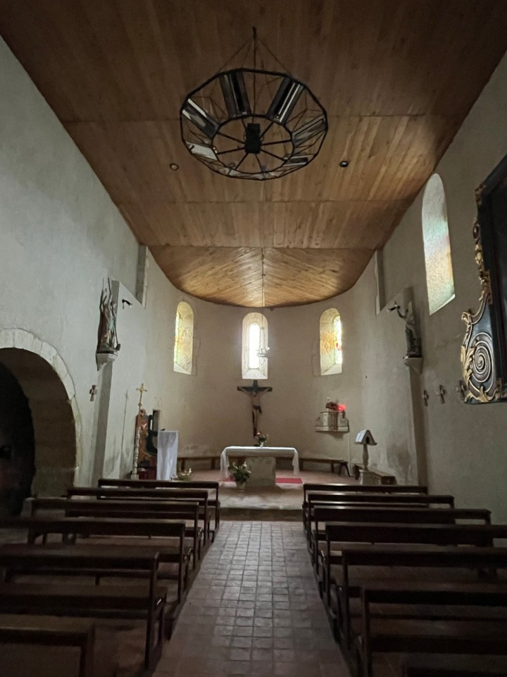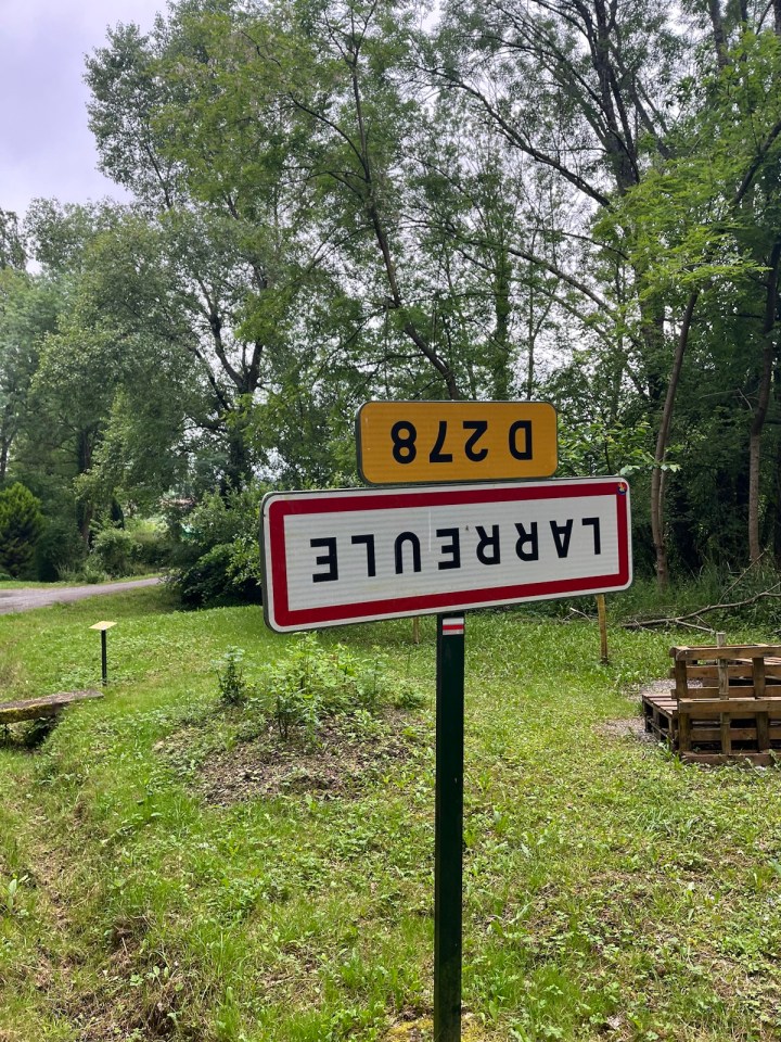 En haut d’une colline je croise un pellerin à contre sens, il va par là et moi par ici. Bonjour, bonjour, buen camino et hop il disparaît. Arrivé enfin à Larreule, terme de la marche du jour, il est 13h30, idéal pour le menu sandwich + pomme du jour.