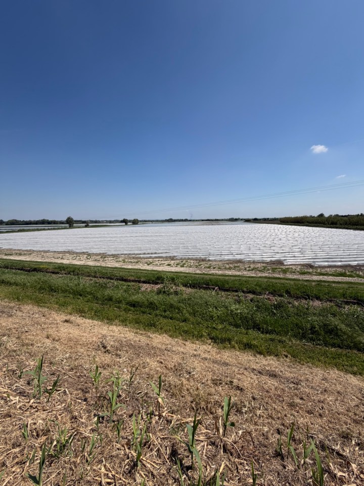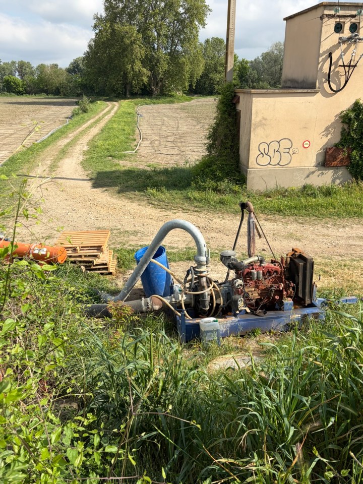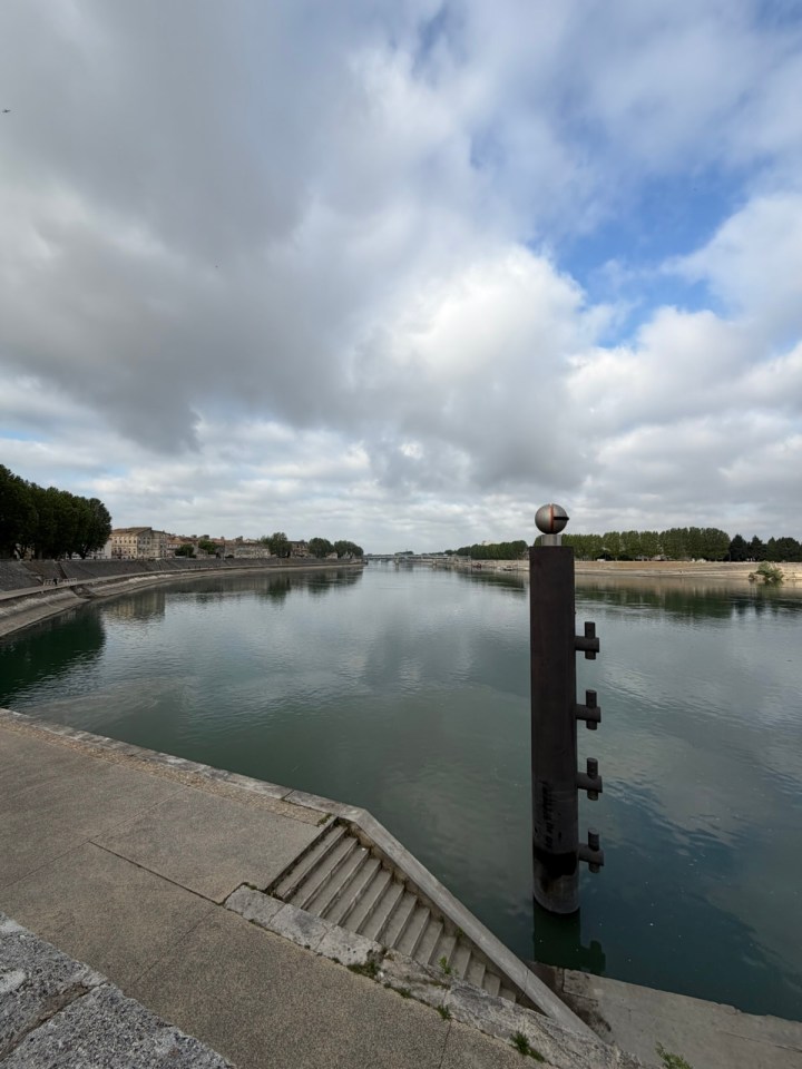 La sortie d’Arles se fait en longeant le Rhône et nous le traversons au pont de Trinquetaille. Puis direction Fourque et le GR42, variante du GR 653, qui nous amène sur les berges du petit Rhône. Je le suivrai seul, les filles sont plus lentes et discutent. Des pompes au diesel alimentent directement du petit Rhône en eau les champs de l’autre côté de la digue. Les sillons sont alignés côte a côte et l’eau est diffusé par compte gouttes.