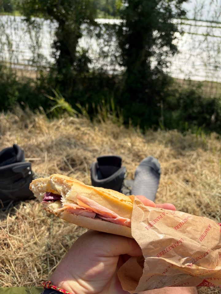 Le paysage sera monotone titre la matinée ainsi et le soleil monte à la verticale en chauffant de plus en plus. Chaque occasion de se distraire est bonne, un avion, un Canadair, un escargot ou un lièvre détalant dans les vignes.