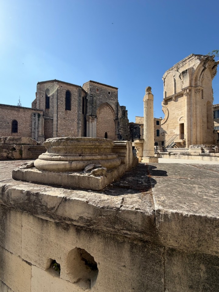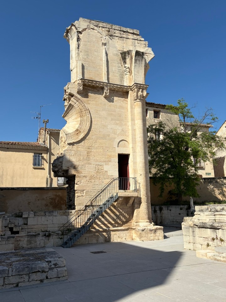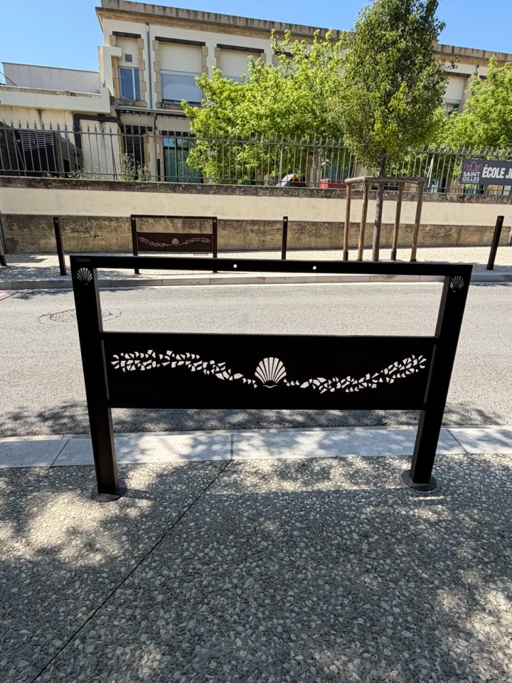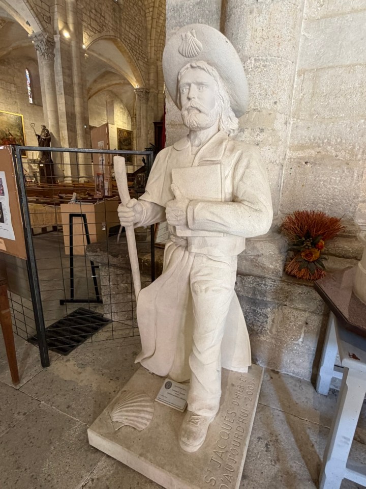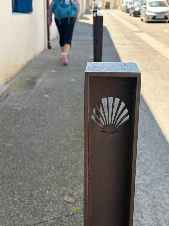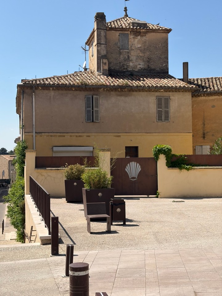 St Gilles est la quatrième ville de pèlerinage au XIIeme siècle Rome, Jérusalem et Saint Jacques de Compostelle. On le voit en arrivant dans celle ci avec toutes ces marques de coquilles visibles dans le mobilier urbain.