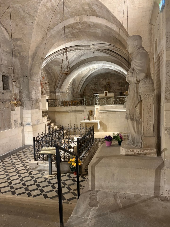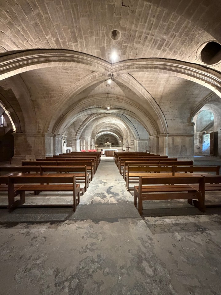 Une fois arrivé au gîte communal, petite visite de l’abbatial, la crypte immense qui est dessous,