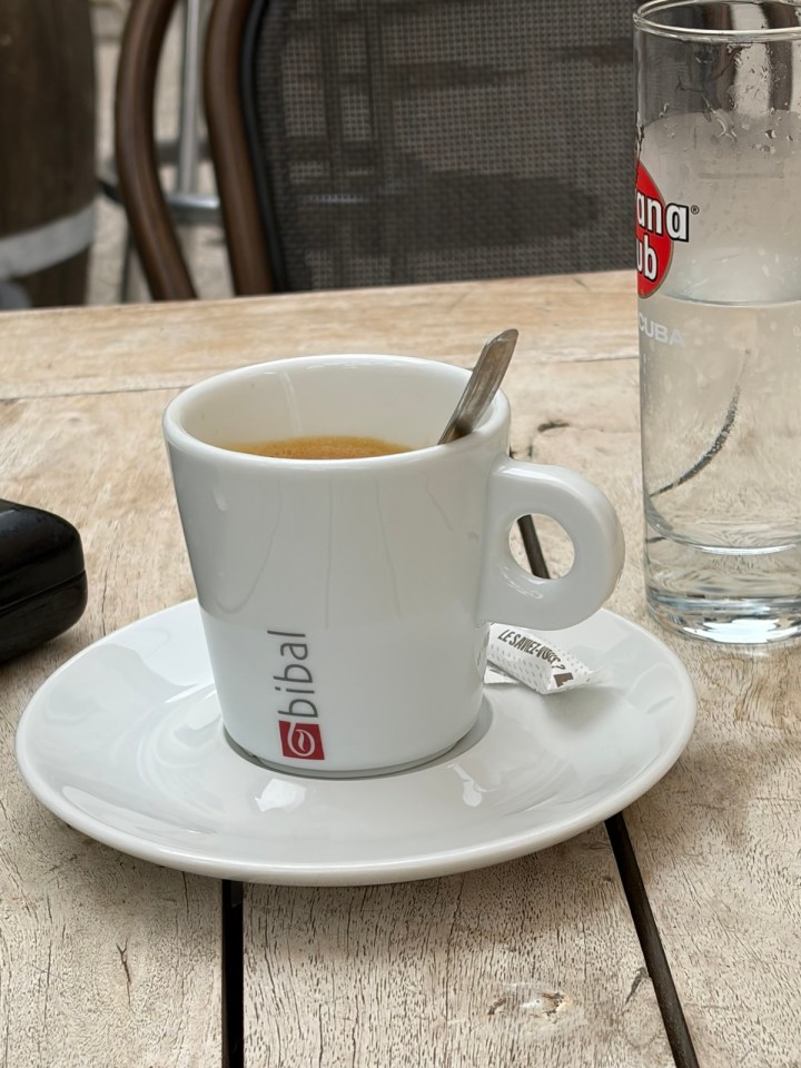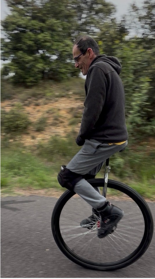Le chemin est assez monotone, une voie verte pour vélo, un peu de verdure de temps en temps. Comme si le vélo n’était pas assez difficile (sport dur je trouve) j’ai croisé un artiste qui juge qu’à une roue c’est suffisant … Un exercice périlleux ! Ayant un peu le temps je profite d’un bon expresso à Saint Géniès des Mourgues.